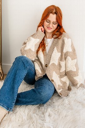Get ready to reach for the stars with this adorable cardigan! It’s got all the cozy vibes you need, plus a sprinkle of star embroidery for that extra magic. With a relaxed fit, cute button-down front, and handy pockets, it’s perfect for layering up on those chillier days.