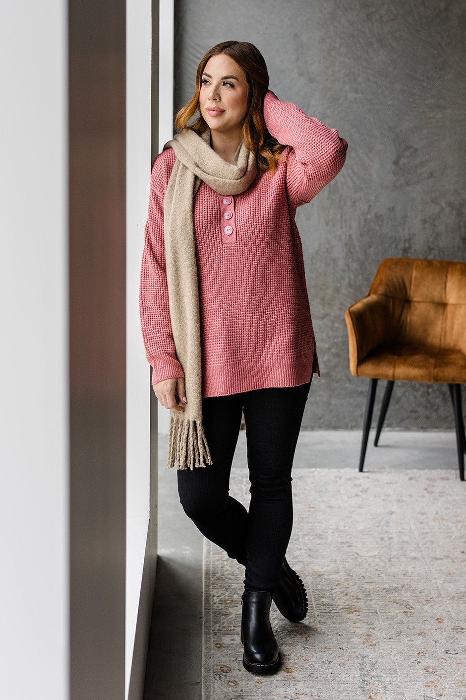 The longer length is perfect for covering the bum, making it super flattering. I went with my usual size M, and it fits true to size. It’s incredibly soft and cozy, perfect for those chilly fall days. This sweater has quickly become a staple in my wardrobe—I can dress it up or keep it casual.