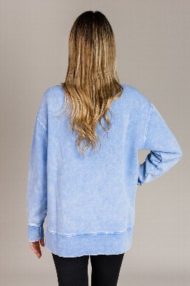 Okay, I’m a summer baby through and through. Cold weather? Not for me. SO I love this sweatshirt because that's me! I’m wearing a size large and the fit is super comfy with just the right amount of slouch. One detail I’m obsessed with: the subtle slit on the hem. It gives the sweatshirt a cute little shape and makes it perfect for pairing with leggings; no bunching, just easy and flattering.