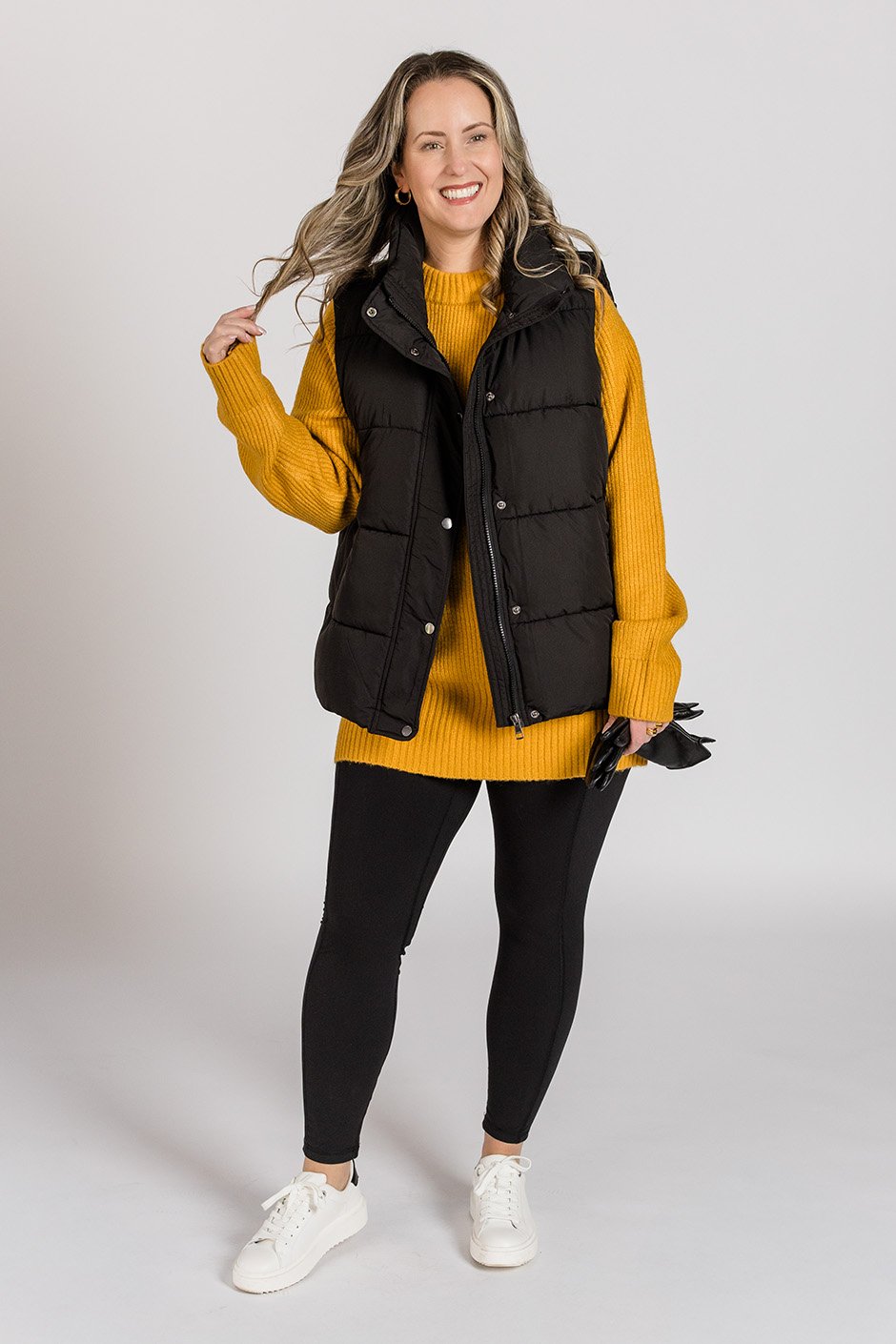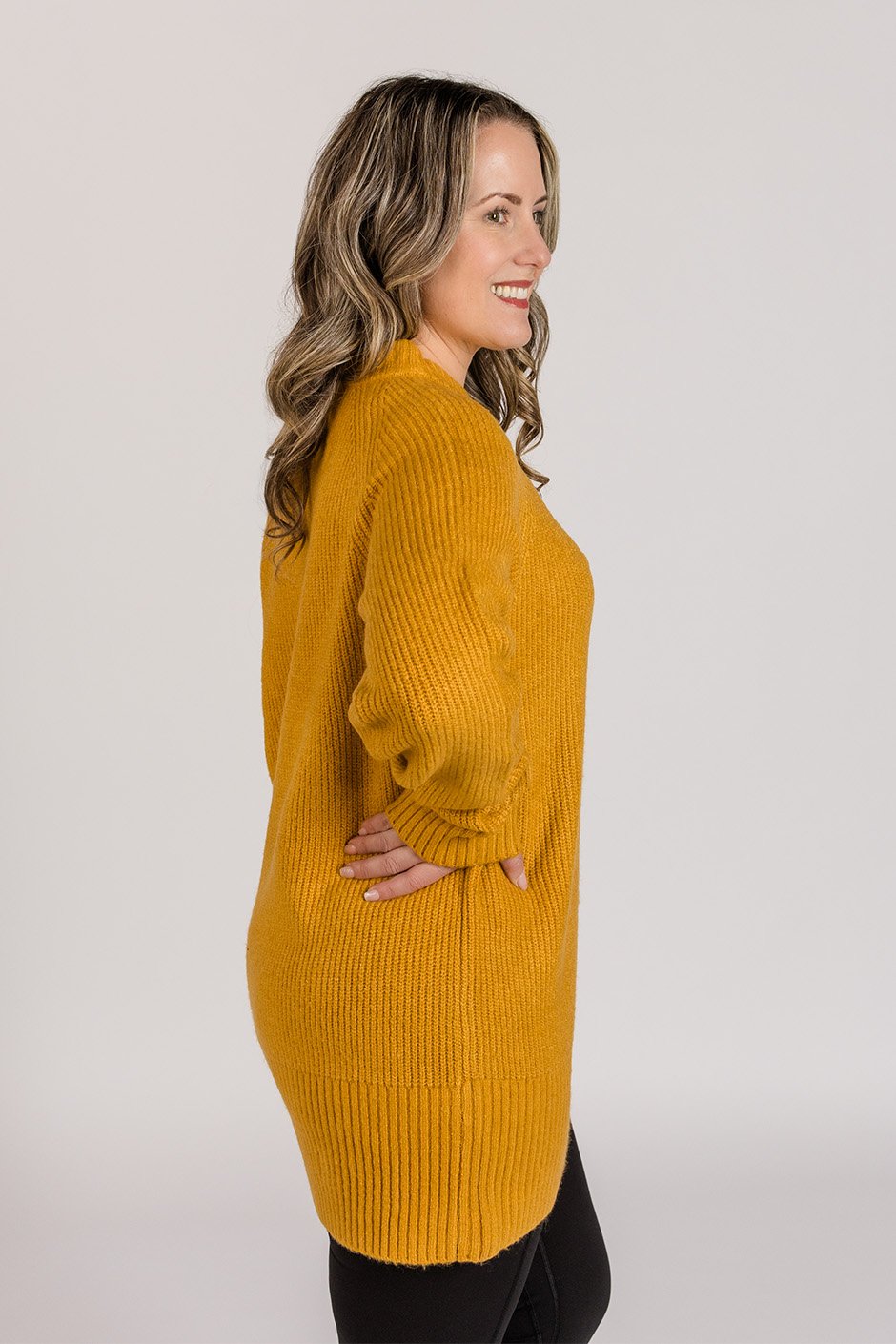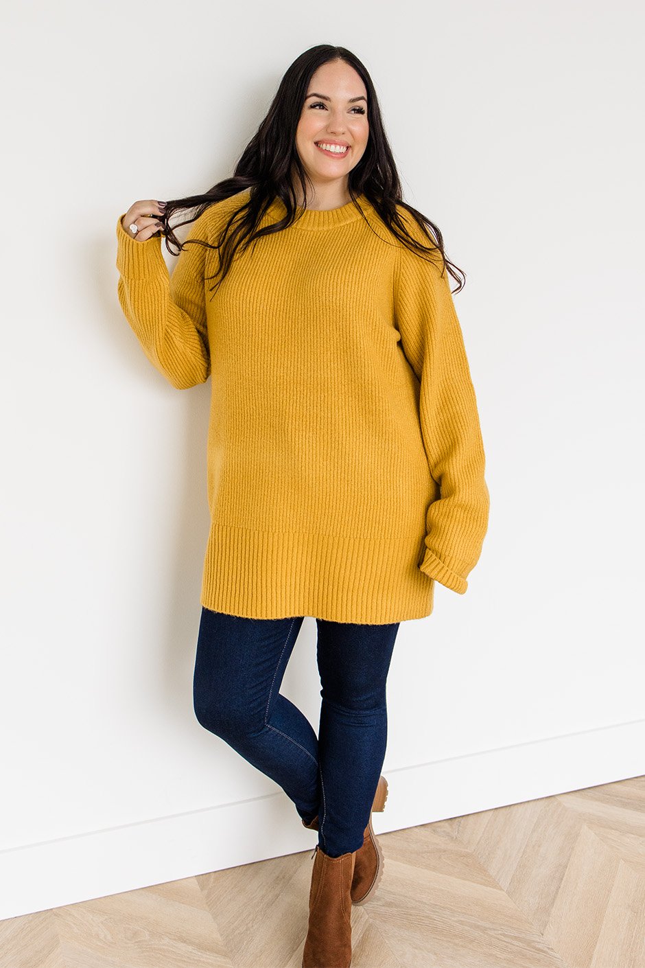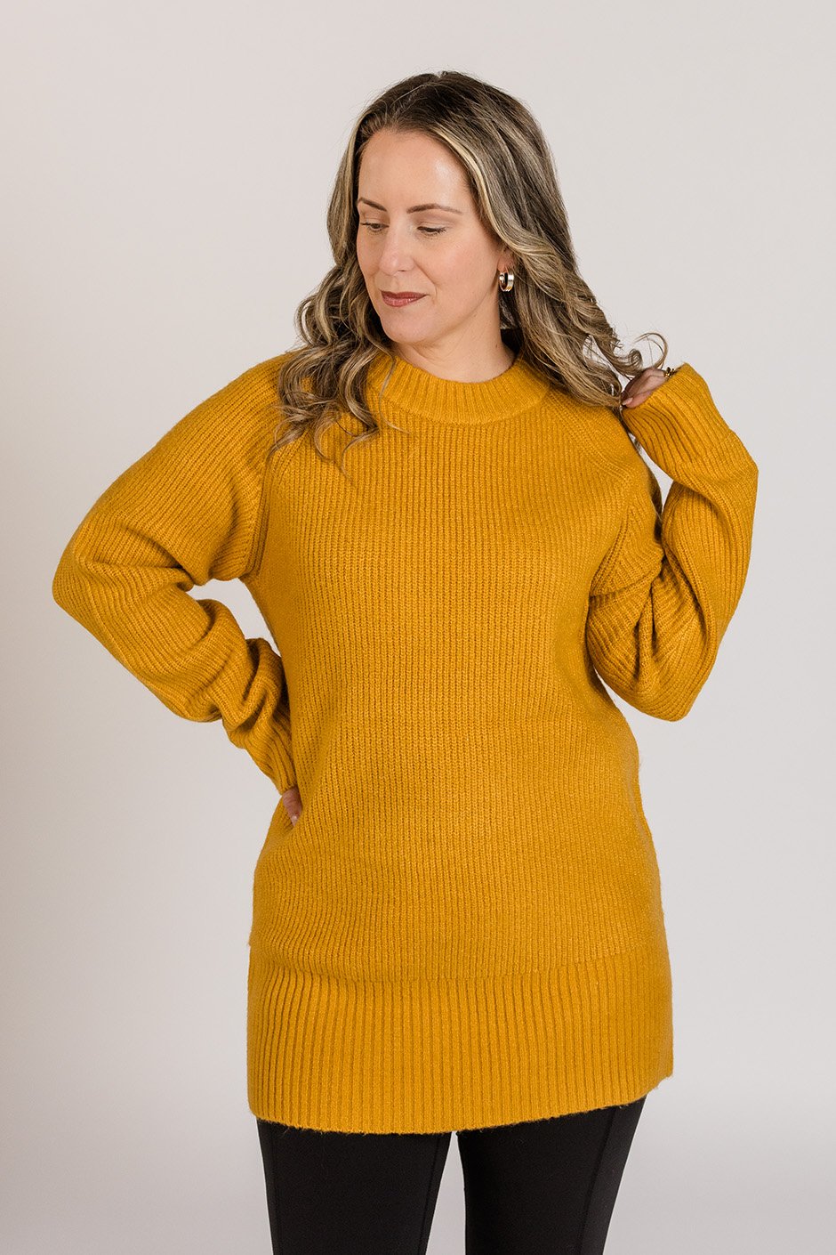 This tunic sweater understood the assignment! I wore a size L and the fit is totally true to size, with just the right amount of room to drape without drowning me. The cut is slightly tapered at the sides to give a little shape, but still loose enough for that comfy, relaxed vibe we all love. The sleeves hit perfectly at the wrists without any bunching, and can we talk about the knit? It’s soft but structured, with enough weight to hang nicely and show off that subtle texture. 😍