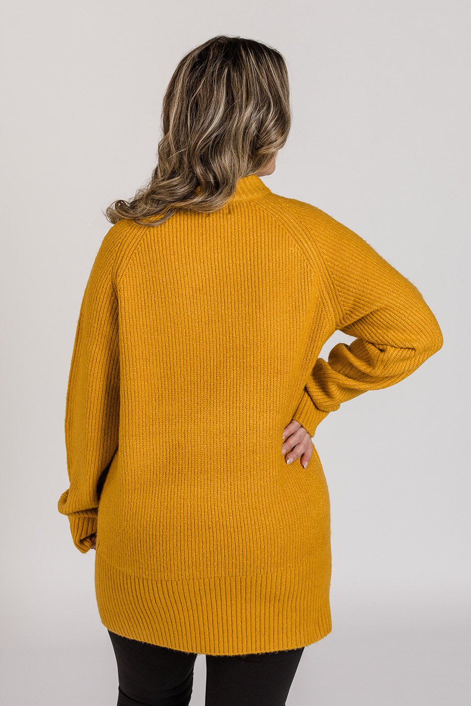 This tunic-length sweater is amazing! The fabric is thick and high-quality, making it super cozy and warm. What I love most is how versatile it is—you can easily dress it up or down depending on the occasion. I’m wearing a size M (my usual size), and the fit is perfect. I’d definitely stick to your true size for the best fit. Highly recommend this one!
