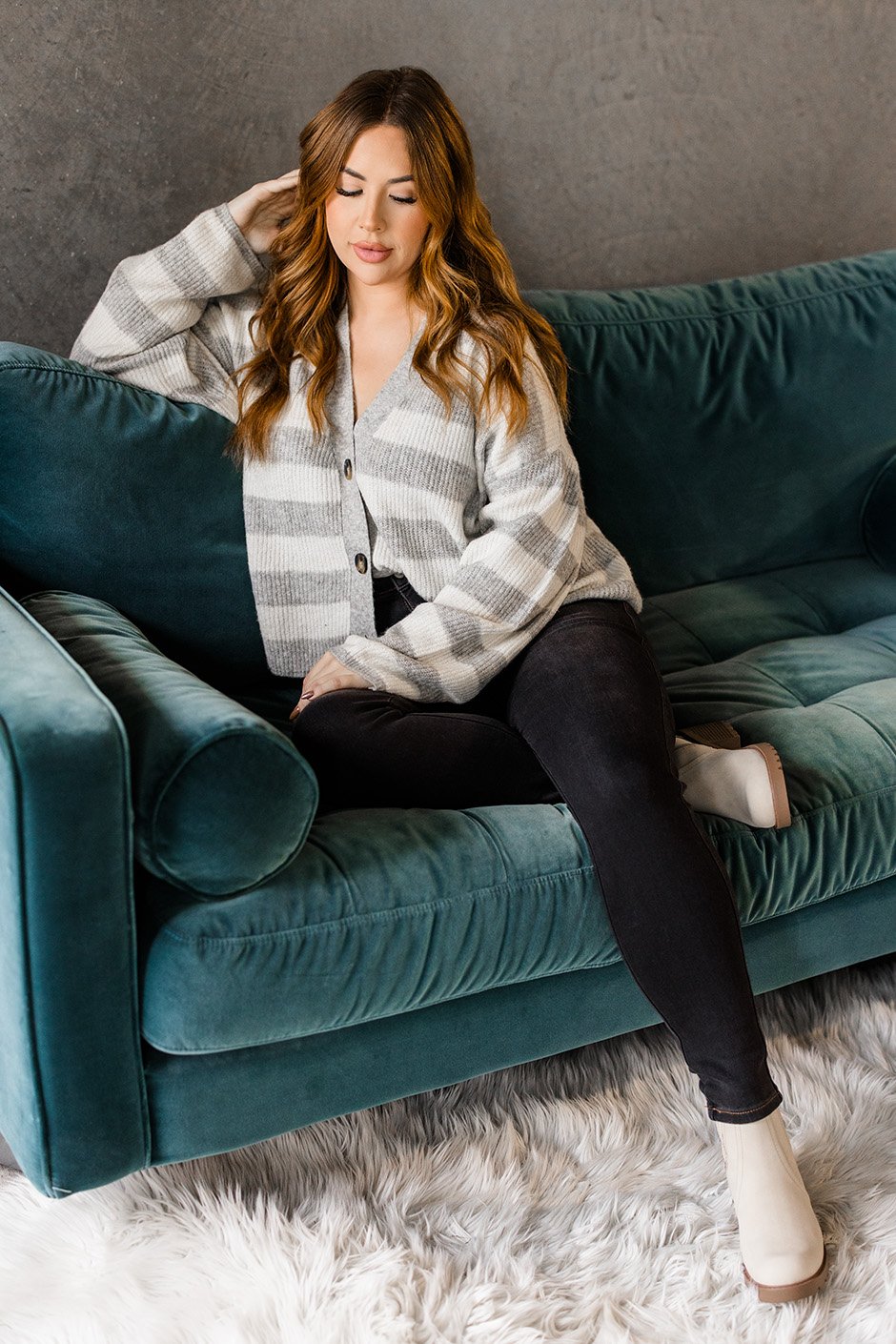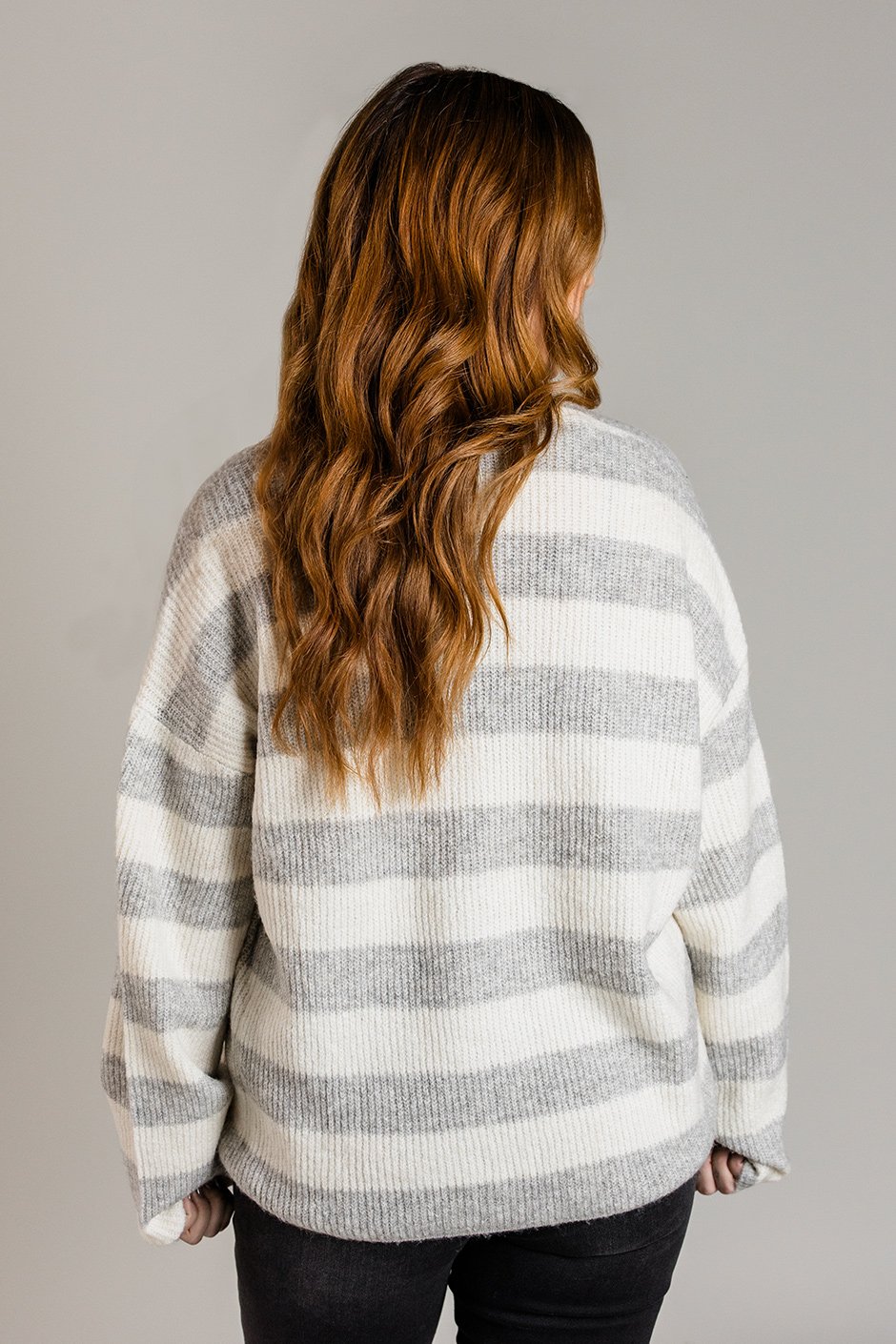 I could see this quickly becoming my favorite cardi! I admit sometimes I'm afraid of stripes but the thicker stripe on this sweater is super cute and flattering. It’s perfect for layering over a tee or wearing on its own. I’m wearing a size M, my usual size, and the relaxed fit is super comfortable.