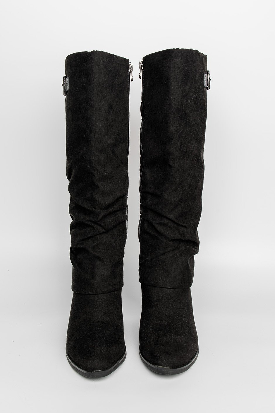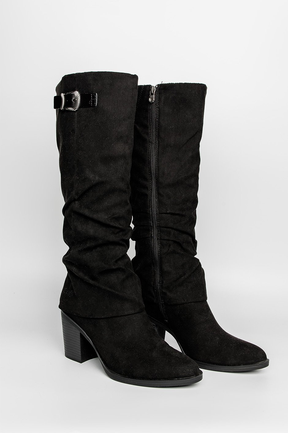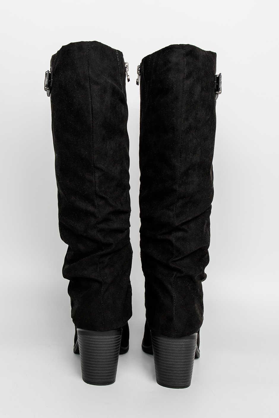 Turn heads with the Sophie Slouch Tall Boots—your new style statement. Designed in luxe faux suede, they feature a fold-over design, chic buckle detail, and a side zipper for easy wear. Confidence starts from the ground up, and these boots deliver!