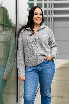 This rib-knit sweater is exactly what I’ve been looking for! The half-zip detail is so on-trend, and the fabric is super soft and cozy. I’m wearing a medium, my usual size, and the fit is spot on—relaxed but still flattering. It looks amazing layered over a crisp white tee, which adds the perfect casual-chic vibe. This is definitely going to be a staple in my wardrobe all season!