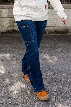 Okay, these jeans completely exceeded my expectations! The fit is amazing, they’re super flattering without feeling tight or restrictive. I’m wearing a size 5 and they fit just right, very consistent with typical Judy Blue sizing. The bootcut gives just the right amount of shape without being too flared, and the cargo pockets are a fun, functional touch (and yes, they actually stretch!).