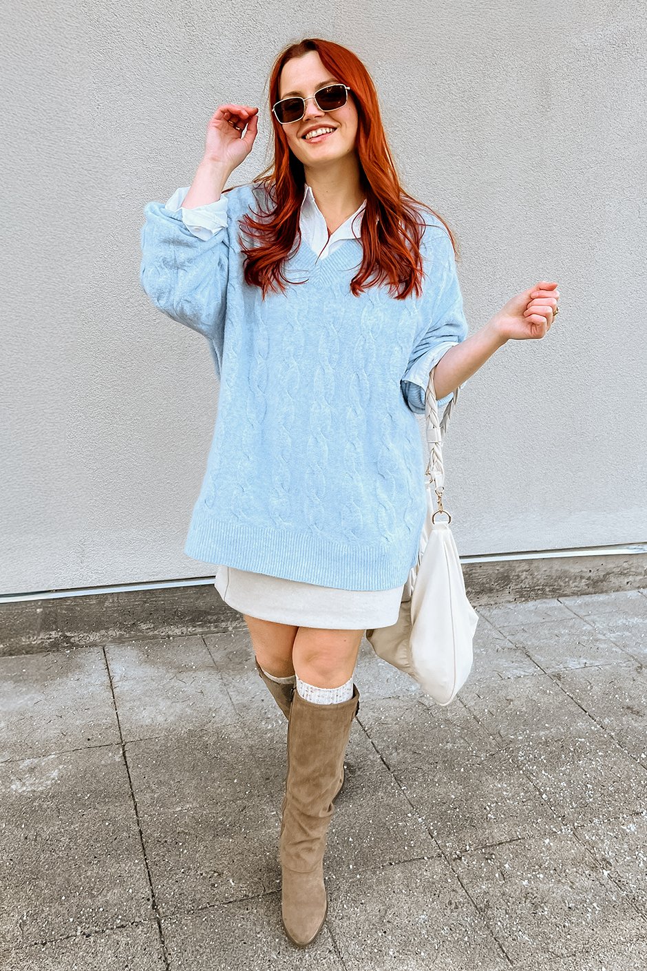 I absolutely love this lightweight cable knit sweater! The fabric is super soft and feels incredibly comfortable against the skin, making it perfect for layering or wearing on its own. The V-neck adds a flattering touch without being too deep, and the longer fit gives it a relaxed and casual vibe. I’m typically a true size M, and the oversized fit is just what I was looking for. If you prefer a more fitted look, you might want to size down, but I personally enjoy the looser, cozier feel of sticking to my usual size. Overall, it’s a stylish and comfortable piece that I’m excited to wear throughout the season!