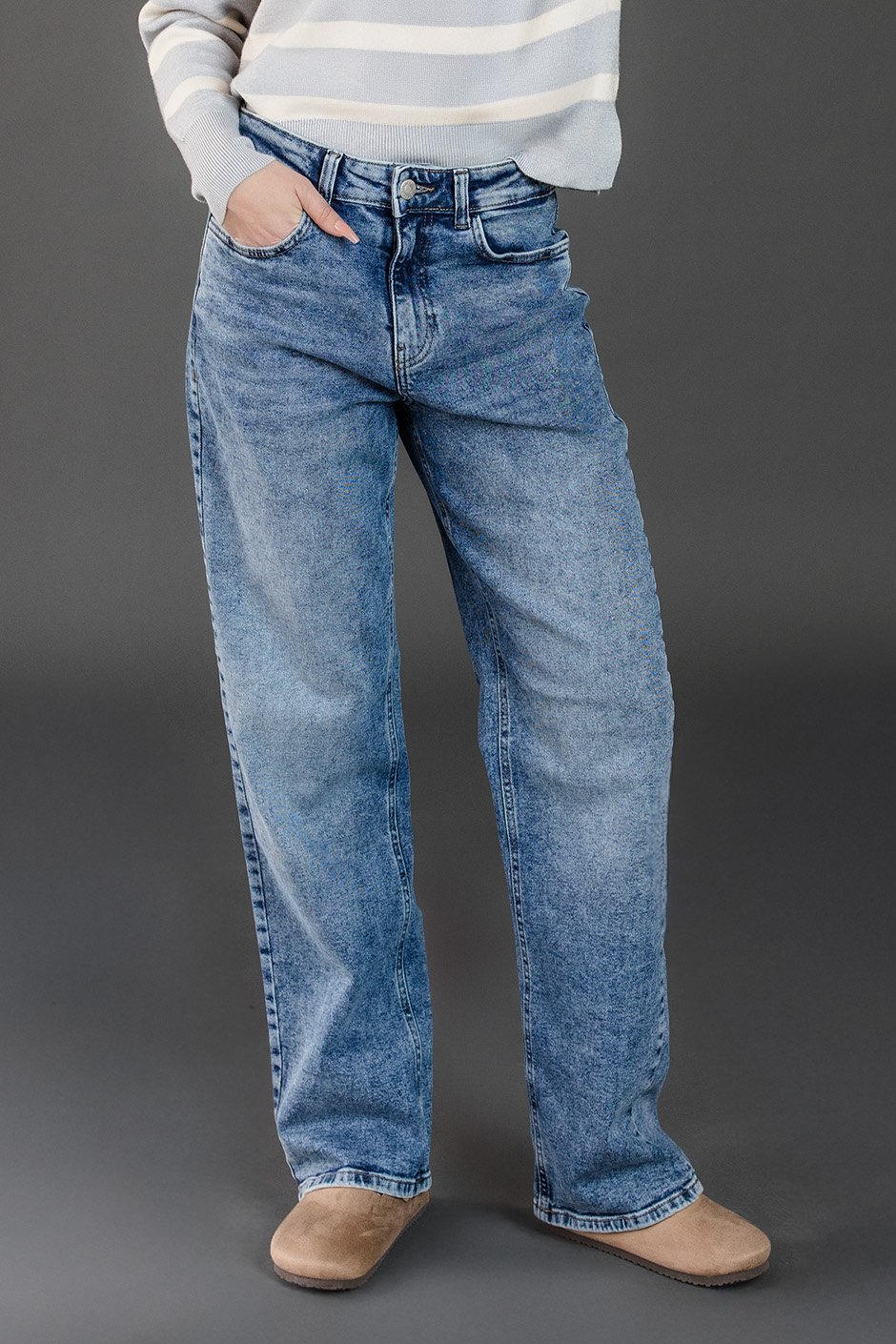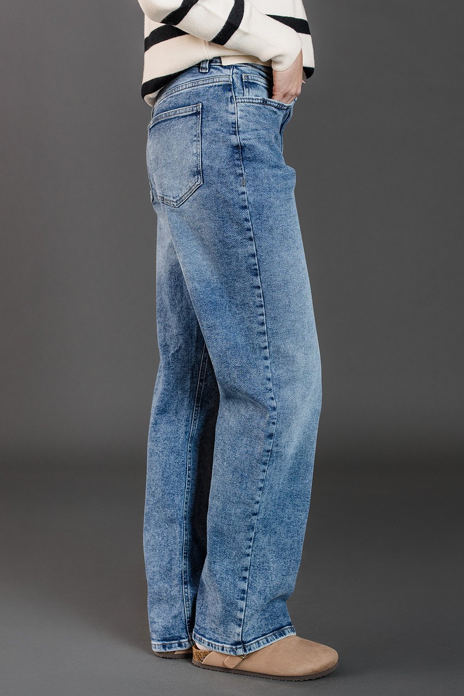 I’m absolutely in love with these jeans! The boyfriend fit is super comfortable, yet still flattering. I especially appreciate that they offer two seam lengths for taller ladies—I'm wearing a size 26/32 seam, and they fit perfectly. The clean, non-frayed design gives them a polished look, which I really like. The in-between wash is perfect—not too dark, so these jeans are definitely versatile enough to wear well into spring. A must-have addition to any wardrobe!