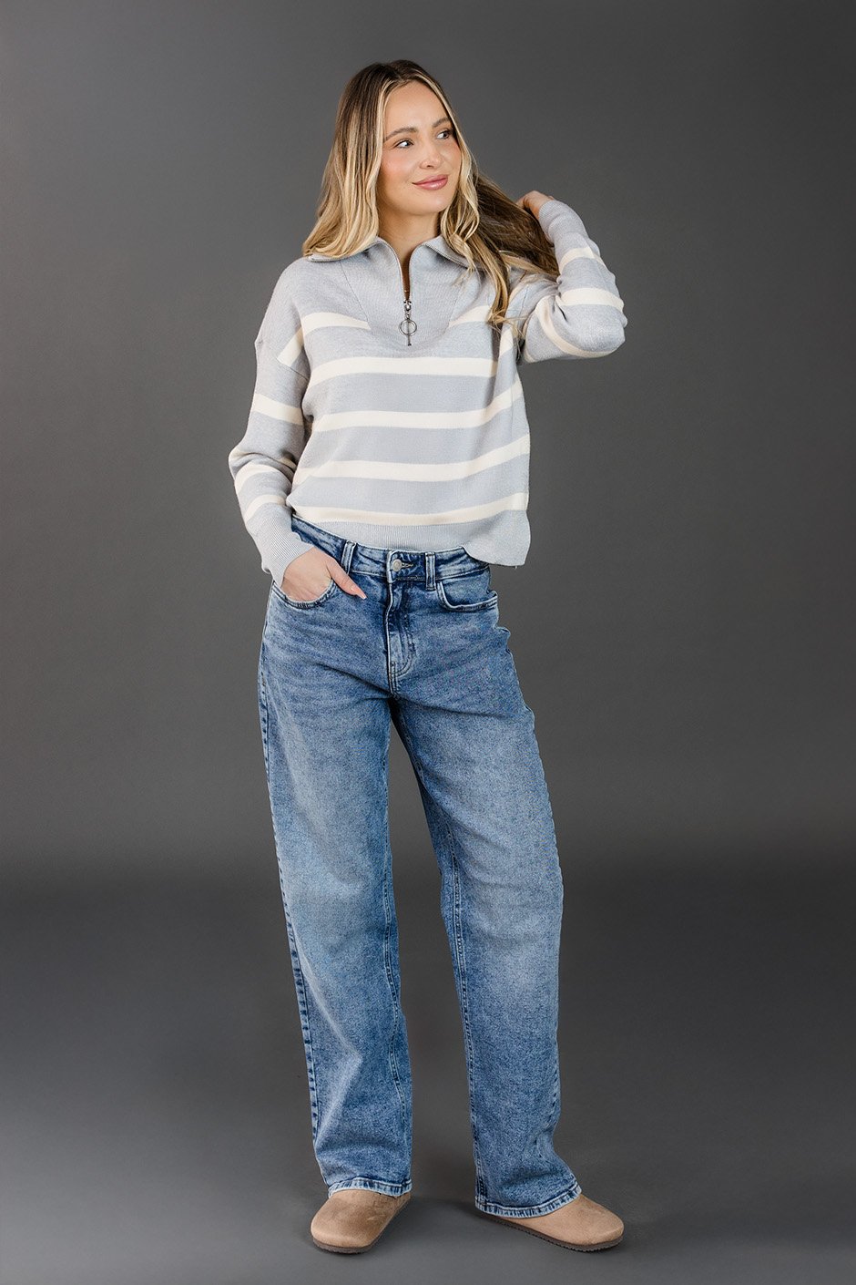 Love these jeans! The 32/32 is a great fit, with that relaxed boyfriend style that’s still flattering. I could size down for a slimmer look, but I like how easy and comfortable they feel.