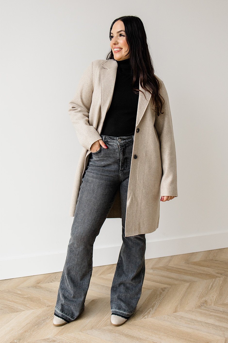Judy Blue is my absolute favourite, so I was so excited to try these jeans on! The flare leg, tummy control, unique hem and that typical JB stretch make these an absolute yes!! The grey colour is so pretty and the hem detail on the bottom is so unique! I'm wearing my usual JB size 11 and love the fit, the length is a touch long on me, but I'll just wear them with a slightly taller shoe!