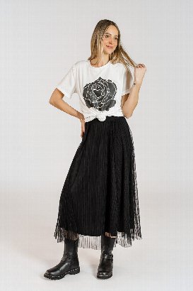 The flow and movement that this skirt has make you feel gorggg. It feels so light and airy when you walk. I'm wearing it in an XL, and the fit is spot on. The waistband has just the right amount of stretch, so it sits comfortably without digging into my hips. It’s one of those pieces you can style a million different ways and it’s super flattering and easy to wear. I love how effortless it feels!