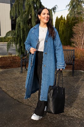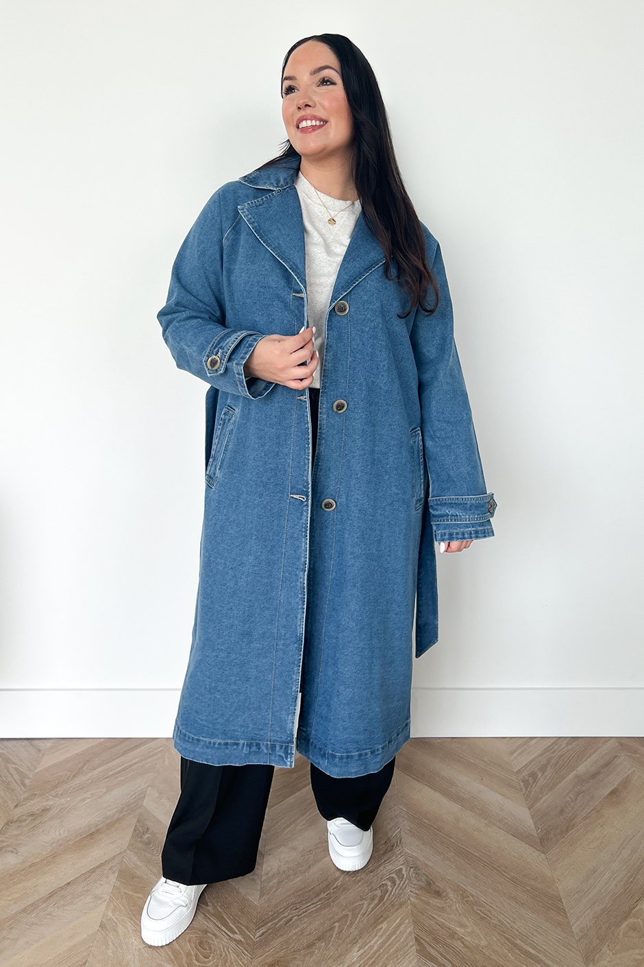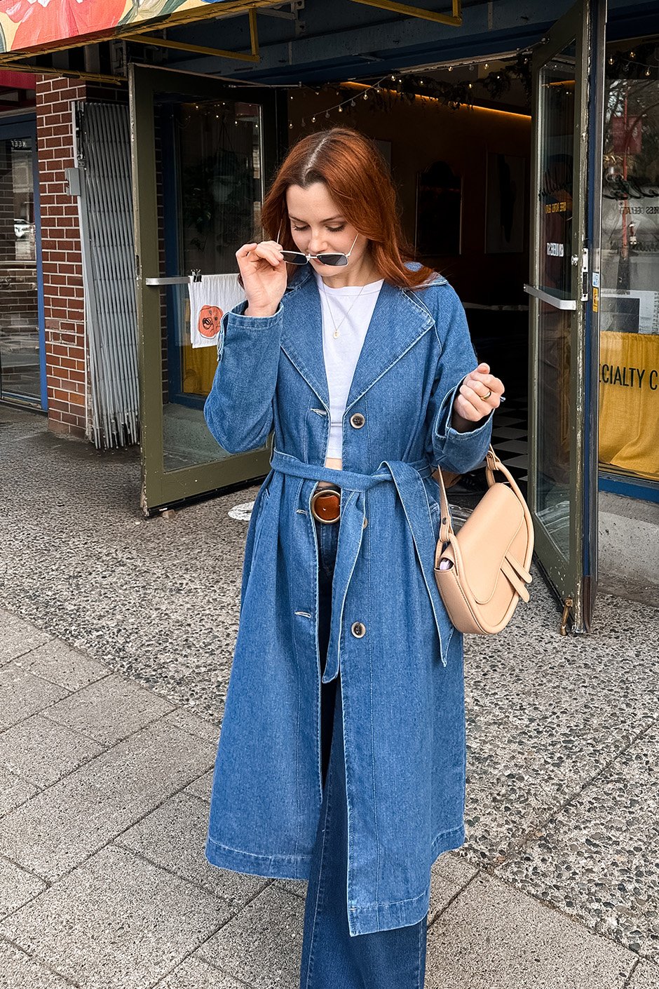 The Aveline Denim Trench Coat brings a fresh take on the classic trench. Soft denim, belted waist and classic collar give it that polished, put-together vibe. Perfect for transitioning into spring when you need something stylish but not too heavy.