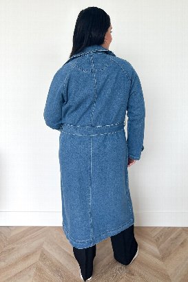 The Aveline Denim Trench Coat is so classy!!! It offers a relaxed fit with soft, lightweight denim and a vintage 70s-inspired look. Featuring a button-up closure, belted waist, front pockets, and classic collar, it’s both stylish and functional. The fit is perfect in a size small—not too oversized. It's the trench you didn't know you needed!