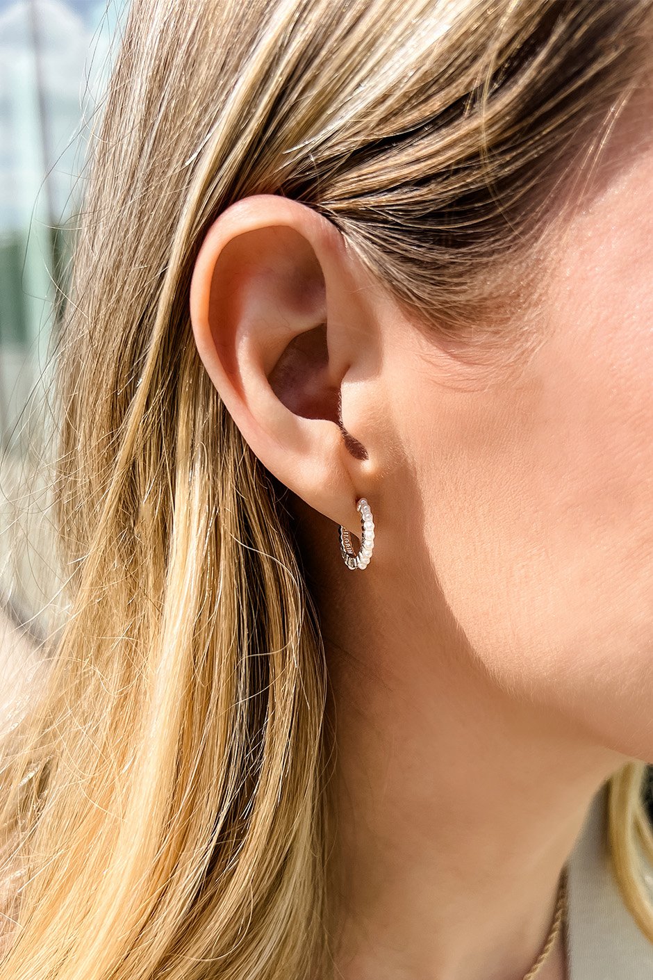 These pearl-studded hoops are absolutely stunning! They add the perfect touch of elegance and sparkle to any outfit, whether casual or dressy. The pearls are beautifully detailed and the hoops have just the right size not too big and not too small. Definitely a must-have accessory to elevate your jewelry collection!