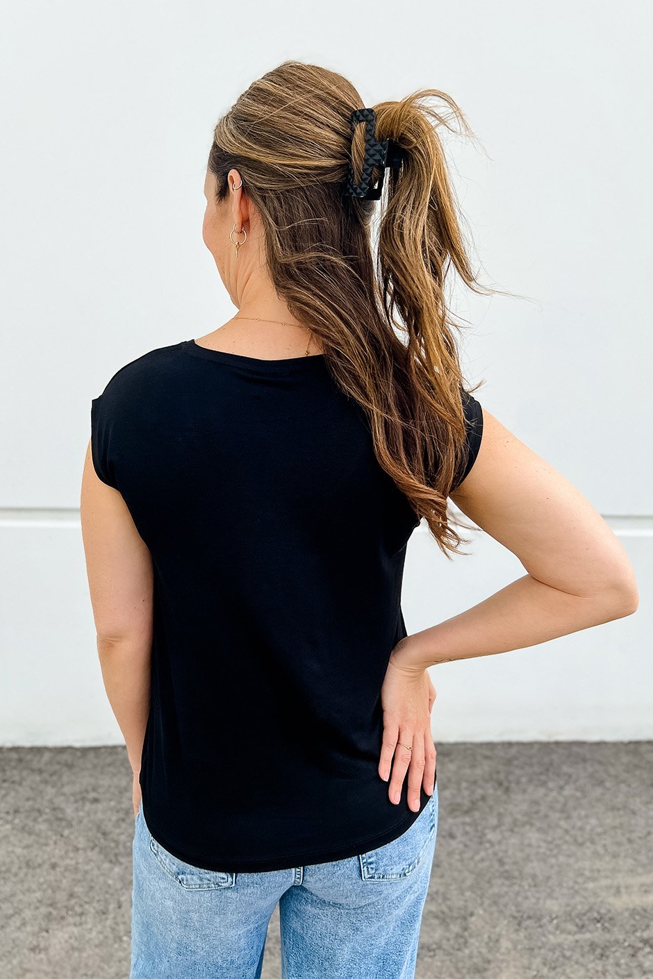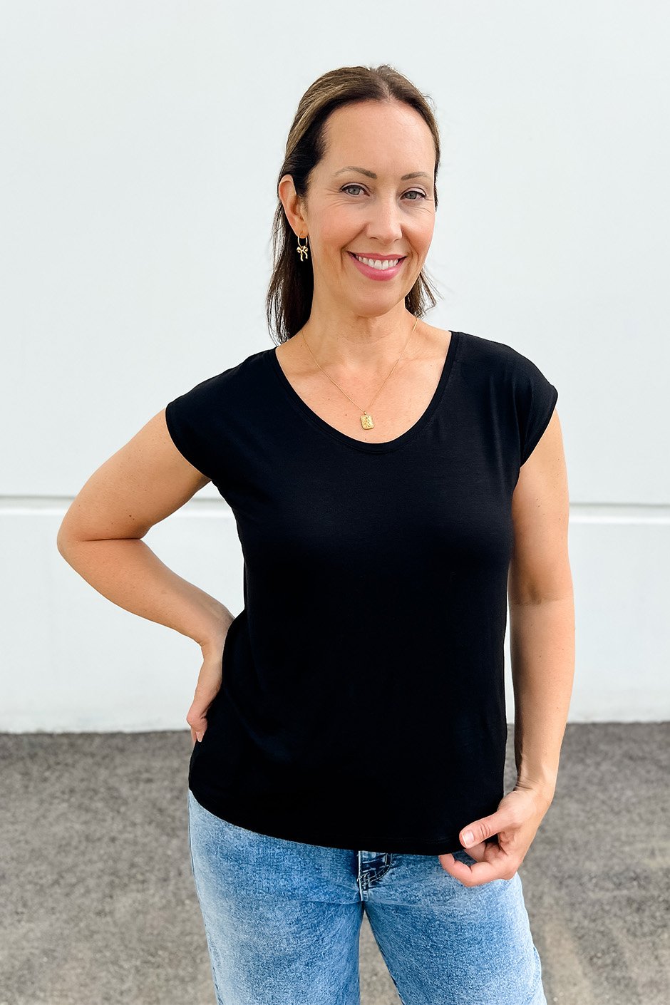 This scoop tee is the definition of an easy everyday essential! It’s so soft and lightweight, with a relaxed fit that feels effortless and comfortable. I’m wearing a size M and it gives that perfect easy tee look, this is exactly the size I’d wear.