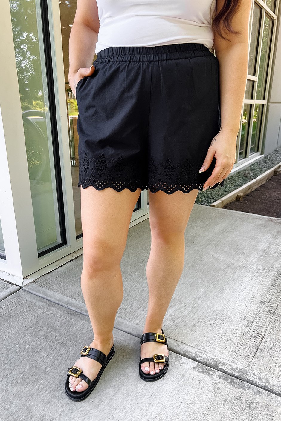 These shorts are absolutely beautiful. The eyelet detail along the bottom gives them such a feminine, elevated feel. What really sets them apart, though, is that they’re fully lined! Especially in white, that’s a total game changer. It makes them so much easier to wear without worrying about them being see-through.