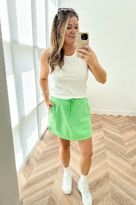 This terry skort is so cute and incredibly comfortable, it's the perfect mix of casual and put-together. It gives the look of a skirt with the comfort of shorts, which I love. The fabric is a thicker terry material that's super soft, stretchy, and comfy without feeling too bulky.
