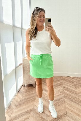 Stay cute and comfortable in the It's A Tie Skort - the perfect blend of style and function! Featuring built-in shorts for coverage, an elastic waistband with a functional drawstring for the perfect fit, a subtle slit at the hem for easy movement, and two handy front pockets.