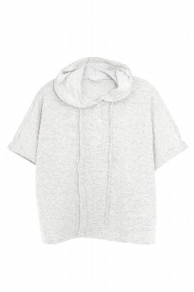 • Top - hood, front button closure, short cuff sleeves, side slits