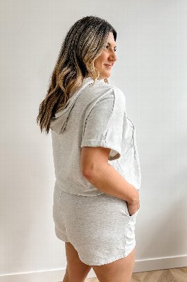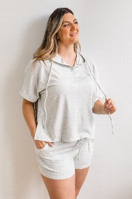This is such a cute set! The polo-style top with a hood is so unique, and the matching shorts pull it all together. So stylish! I’m wearing a small and it fits perfectly. Perfect for running errands, brunch, or just lounging cute at home!