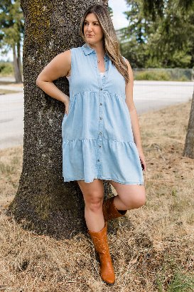I love how this dress has a country-inspired style, but it's such a versatile piece! I can't stop thinking about how perfect it would be for fall with some layered pieces. I'm wearing a size small, which I did find a bit big on me. Unfortunately, there’s no extra small available, so I’ll have to make the small work but with some layering, I definitely can!