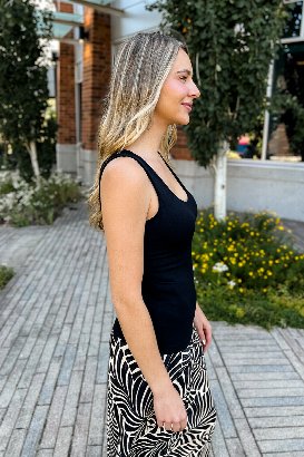 Love love love! This fitted tank is a basic must. I literally live in these and own every edition we've launched, but this one has padding, and let me tell you, it gives a nice little boost… if you know what I mean 😉. I'm modeling it with a bra, but honestly, I’d feel totally confident wearing it without one. The fabric is super stretchy and breathable. I just love it so much! It’s a total dupe for the Aritzia and Skims body-contouring lines, and at a fraction of the price. I'm wearing a size Small/Medium, and as someone who usually wears an XS, it still fits perfectly thanks to that stretch.