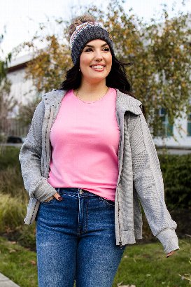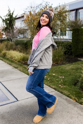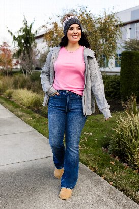OK, yeah, it's a basic tee but at this price it's an Easy Choice to...buy all the colours! This tee from JDY has a great feel to it and is not too fitted and not oversized. It definitely feels more expensive than its price point. It is lightweight and some stretch. Just long enough to leave untucked or do a little tuck. This would fit great under cardigans and blazers. I am wearing my usual size Small and it fits well. For a more oversized fit, size up!