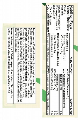 Purified Water, Glucose, Maltodextrin, Fructose, Citric Acid, Sodium Citrate, Carrageenan, Konjac Powder, Gellan Gum, Xanthan Gum, Tribasic Calcium Phosphate, Locust Bean Gum