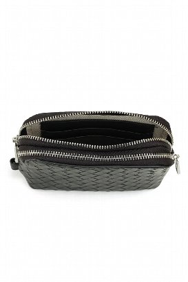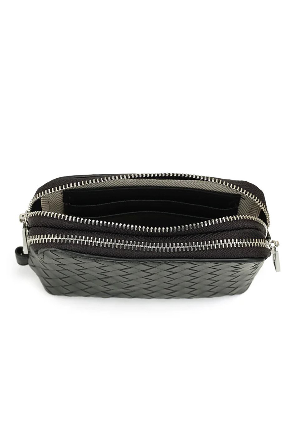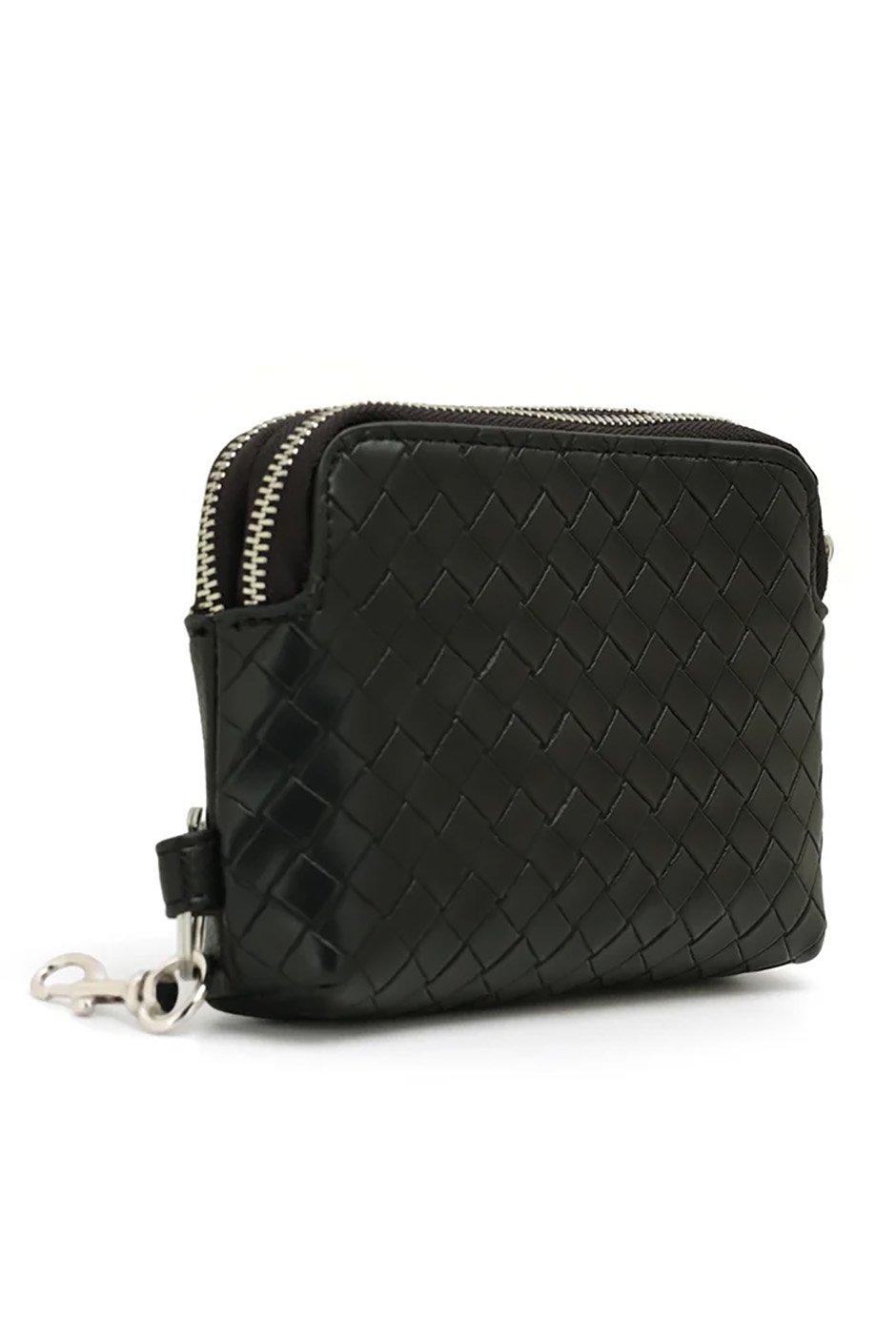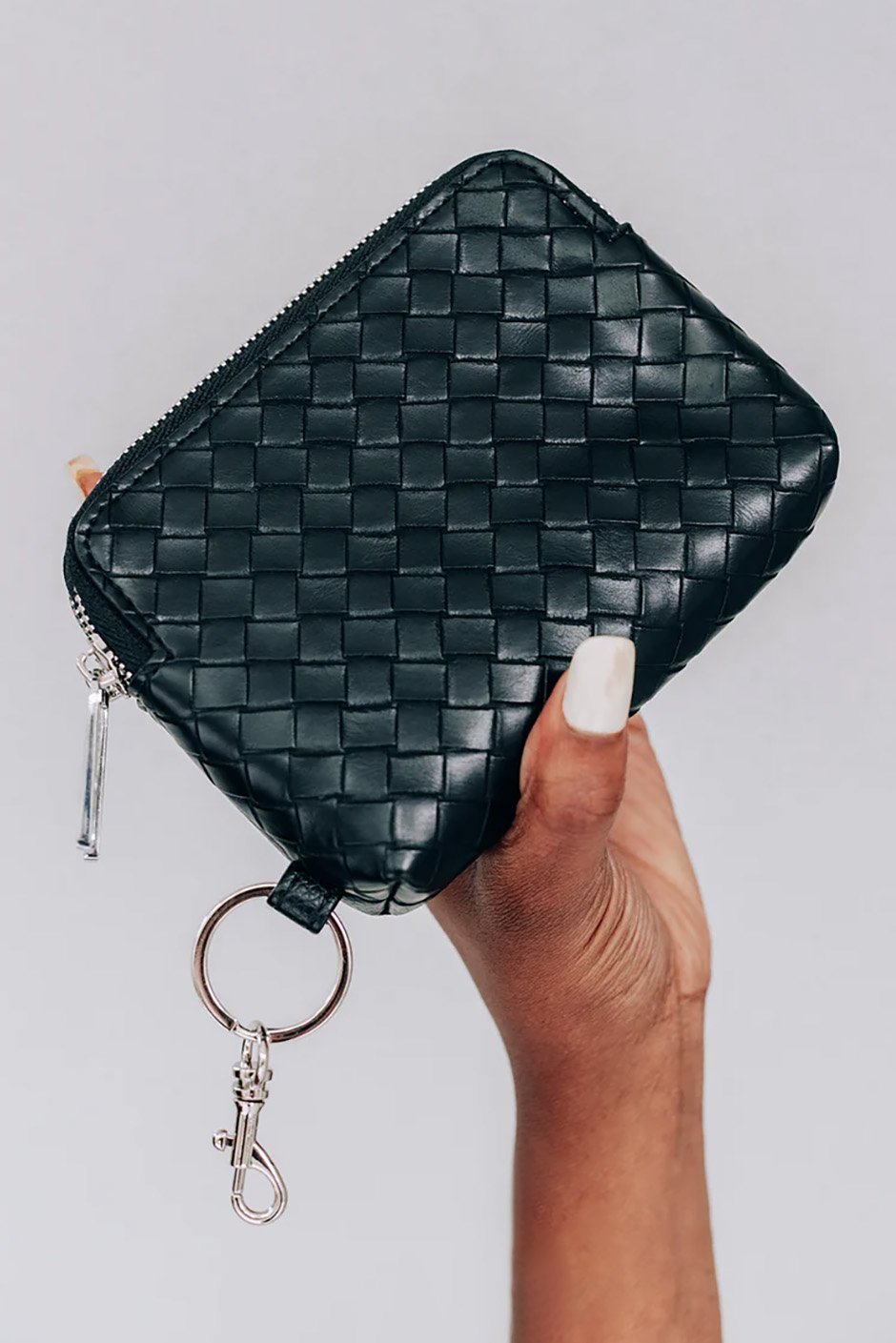 This pouch brings smart organization with recycled woven vegan leather and multiple compartments for all your essentials. The compact design fits card slots, pockets, and even has a keyring hook. Use it solo or slip it into your favorite bag.