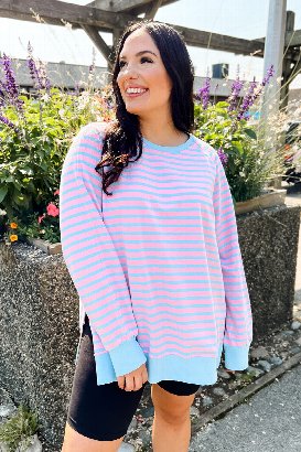 I absolutely adore this pink and blue striped terry top! The relaxed fit is so flattering and comfortable. The soft, stretchy terry fabric is incredibly comfortable against the skin and has just the right amount of give. The large fits exactly how I hoped - relaxed and roomy but still flattering.