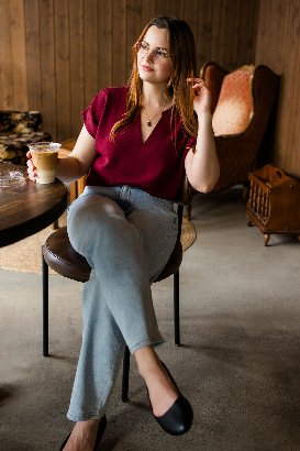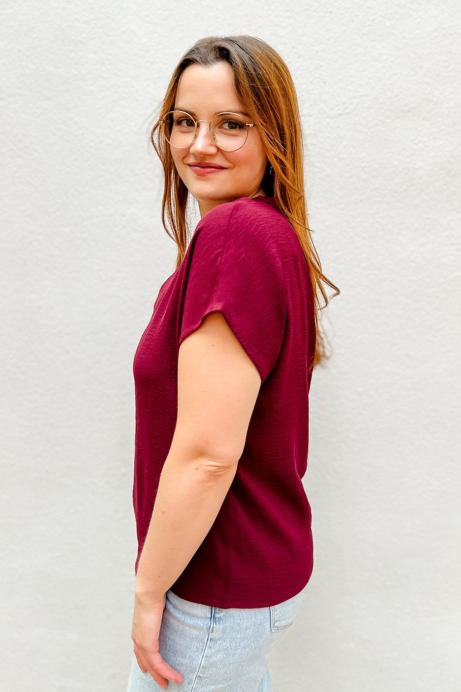 This soft v-neck top has that perfect, relaxed fit that flatters everyone. Great for layering under blazers for work, pairing with jeans for weekend vibes, or styling with a cute skirt for dinner plans!