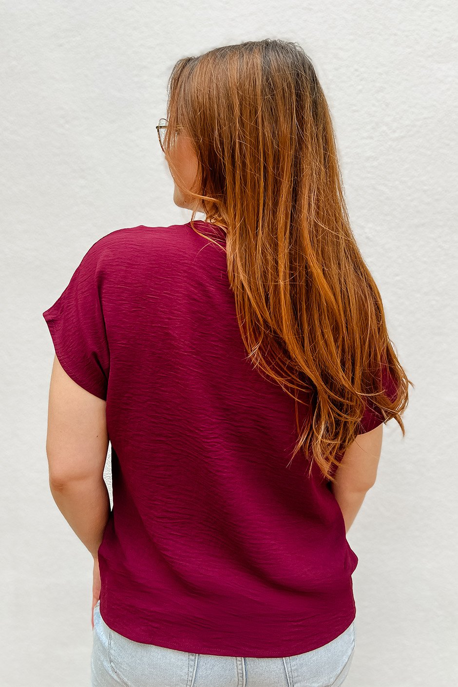 This top is so pretty and delicate, with a cute little V cut-out that makes it feel really feminine. The fabric is super light and I’m wearing a size 40 which fits perfect!