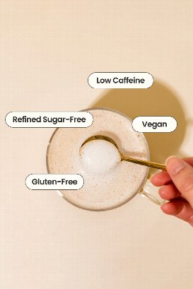 Coconut milk powder* (coconut milk*, tapioca maltodextrin*), Coconut sugar*, Black tea extract*, Cardamom powder*, Cinnamon powder*, Ginger root powder*, Natural flavour*, Vanilla flavour*, Fennel powder*, Lion’s mane mushroom powder*, Reishi mushroom powder*, Maitake mushroom powder*, Shiitake mushroom powder*, Ground cloves*