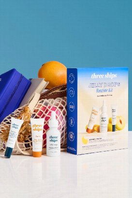 The ultimate hydration & brightening routine. This all-natural kit features a full-sized Jelly Drops Serum, minis of the brightening gel cleanser and ultra-hydrating moisturizer, plus a bonus pair of biodegradable eye masks.