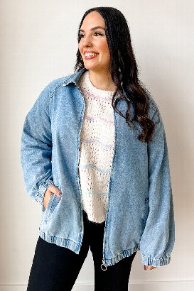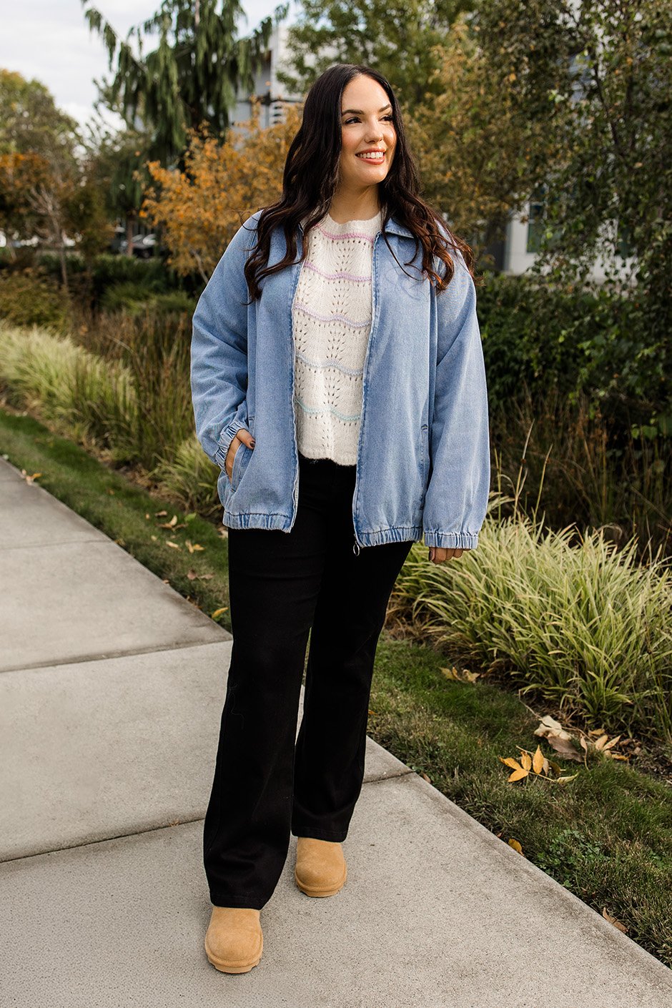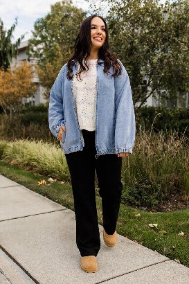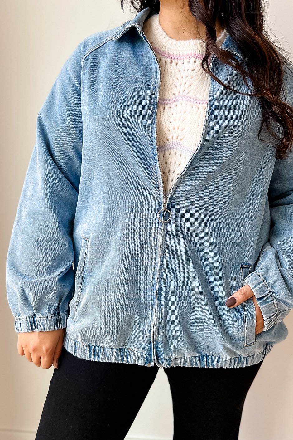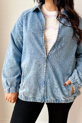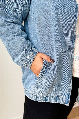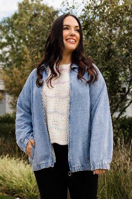 I’m in love! This jacket is the perfect combo of my two favorite styles, denim and bomber! I got my usual size large, and the fit is exactly what I wanted: roomy, slouchy, and super cool. It has that classic bomber shape with elastic cuffs and hem, plus pockets! It's perfect for layering, I’ve already worn it over a sweater and it’s a total vibe. 😍