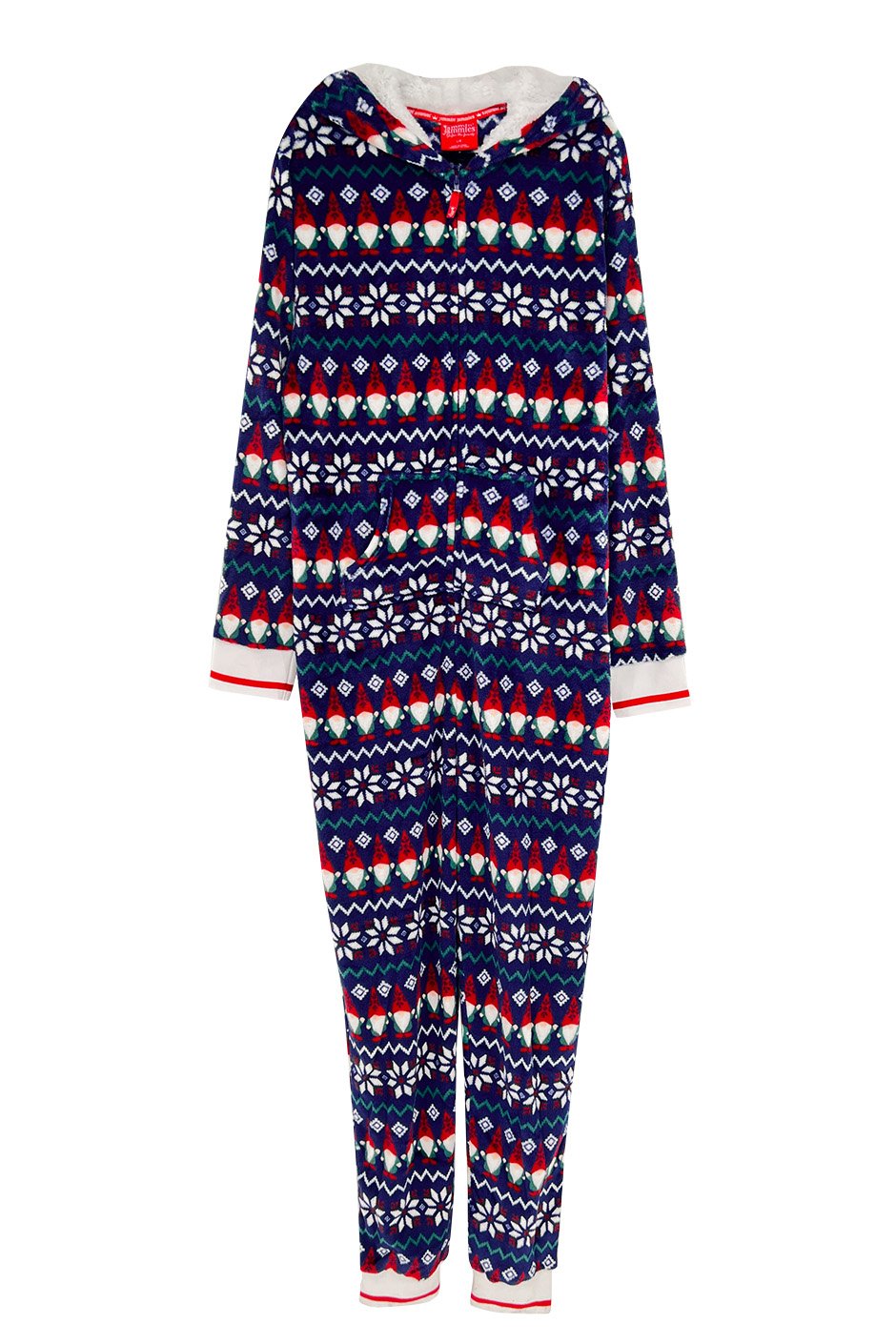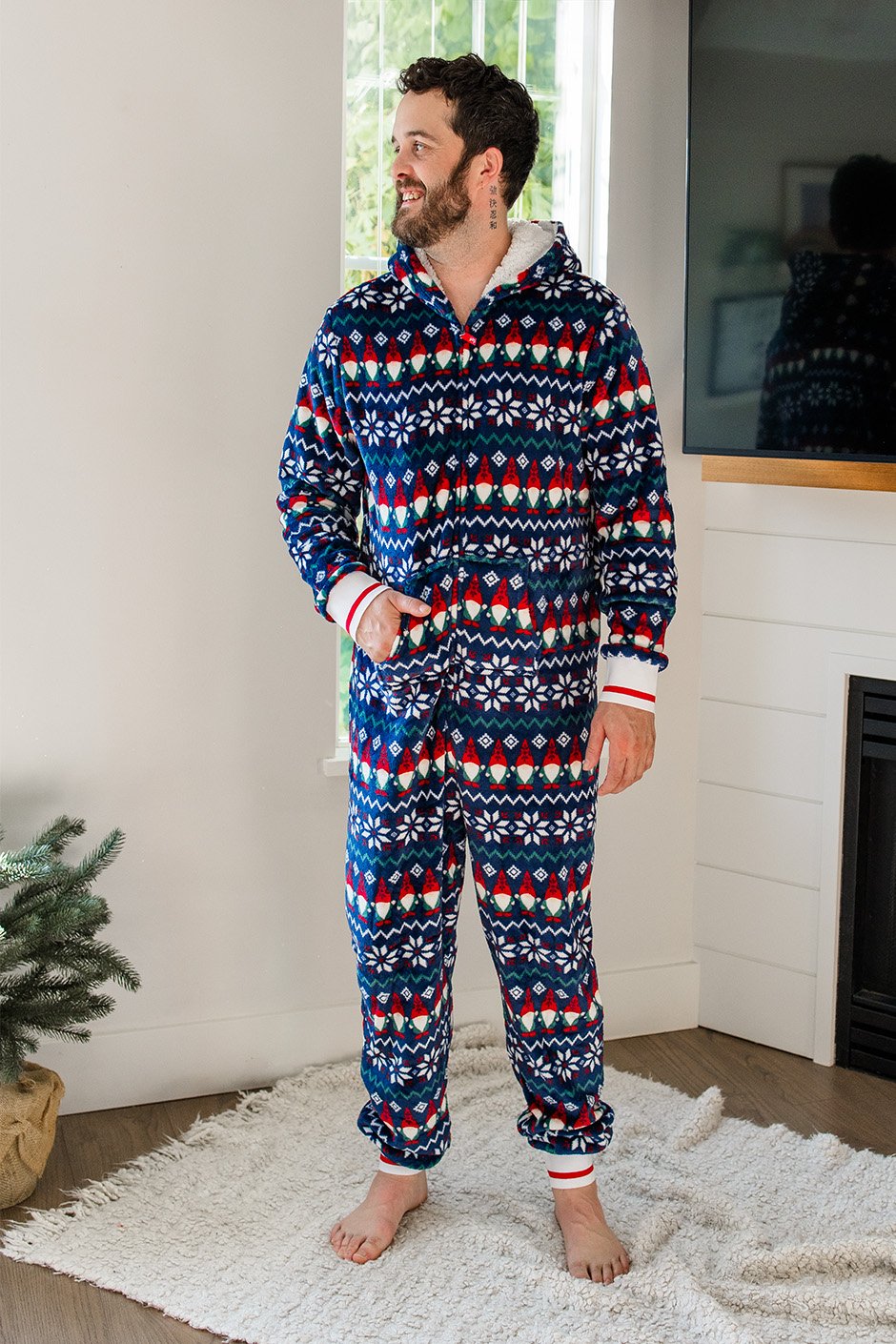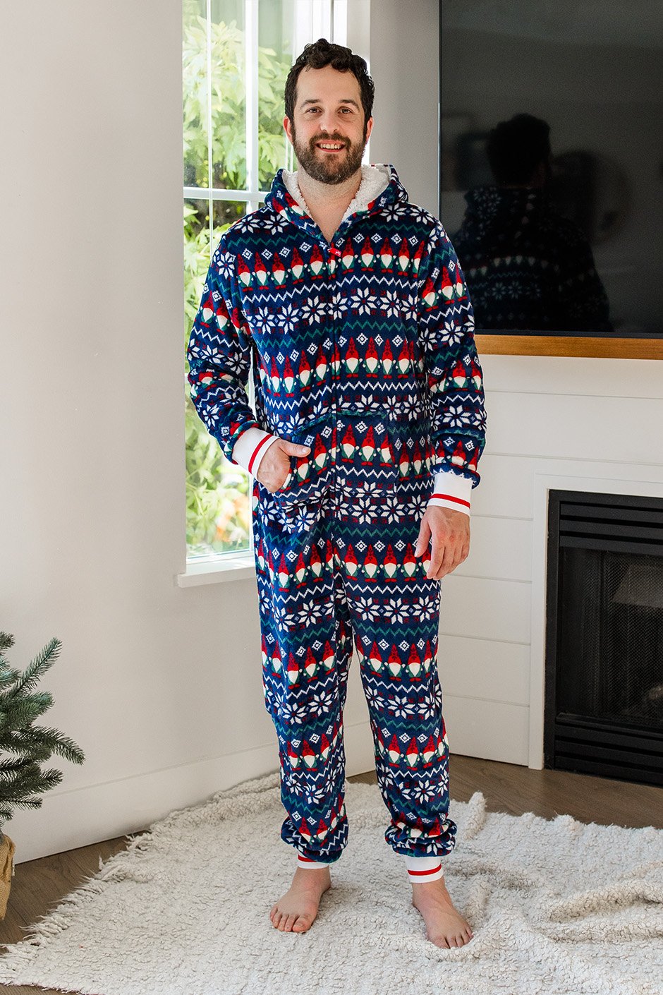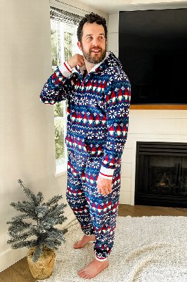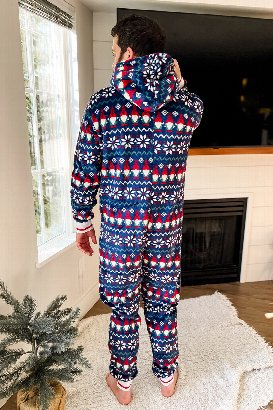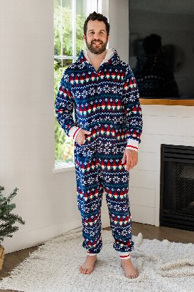 This hooded onesie has plush fabric that's super comfortable for hanging around the house. The front pocket is great for keeping your hands warm or stashing essentials. Perfect for coordinating with everyone and creating those holiday memories that'll last forever.