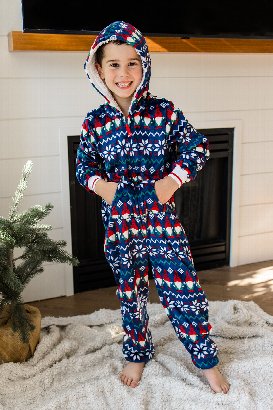 This hooded onesie has super soft plush fabric that's perfect for snuggling and staying cozy all day long. The front pocket is great for hiding treasures or keeping little hands warm. Get ready for the cutest matching family photos ever this Christmas!