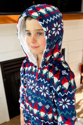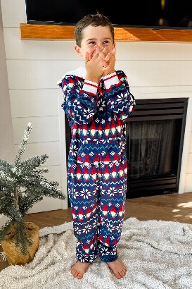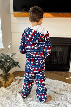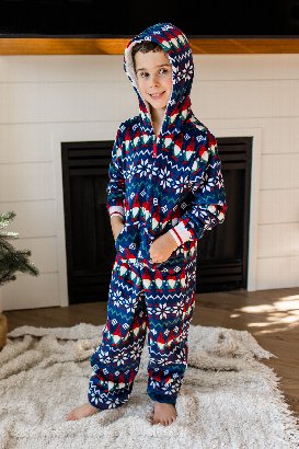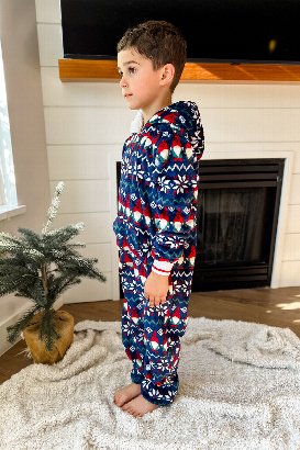 Zayn tried on the kids' onesie in a size 8 and it fit him perfectly. He’s 6 years old, and it gave him just enough room to move around comfortably without being too big or baggy. He said it was super comfy, the inside feels just like the adult version, really soft, slightly fuzzy, and nice and warm. Looks great on both boys and girls, so it’s perfect if you want the whole family to match!