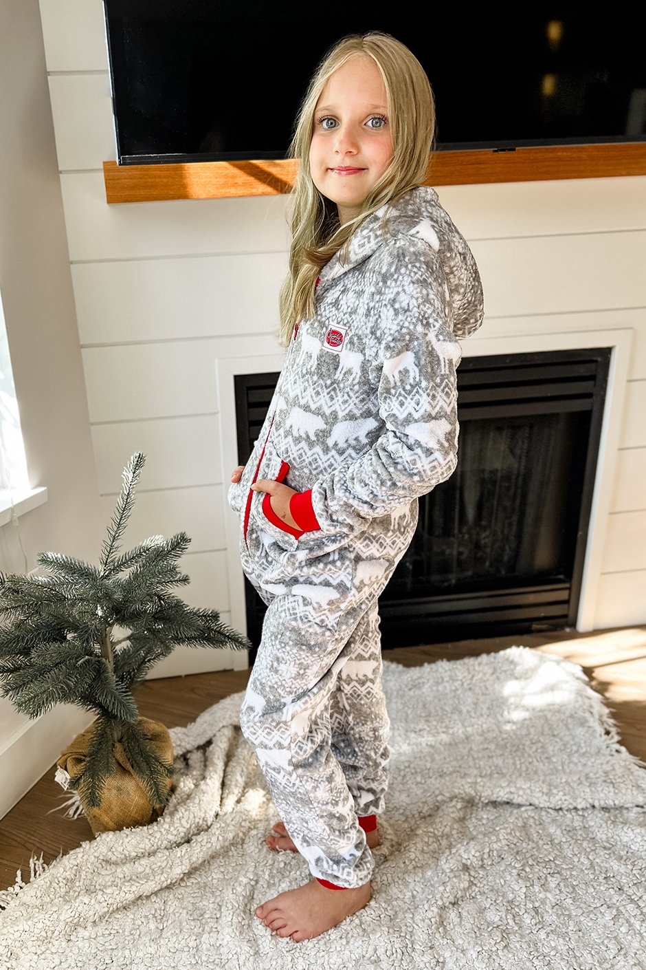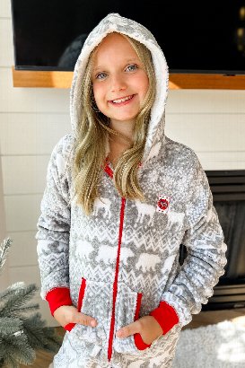 This cozy hooded onesie has plush fabric that's perfect for little ones who love to stay warm and comfortable. The front pocket holds their favorite small toys or keeps hands toasty. Perfect for Christmas morning snuggles and creating those precious holiday memories!