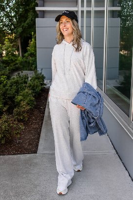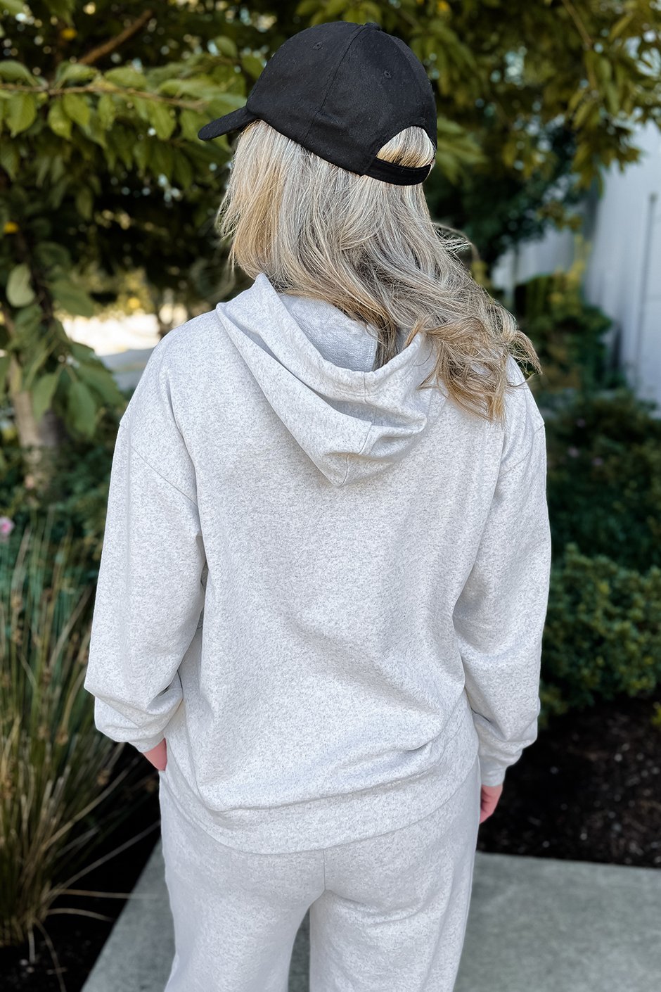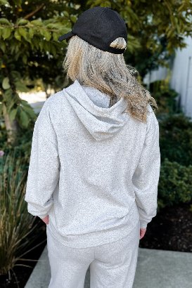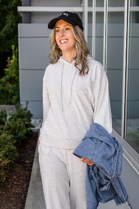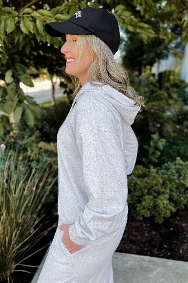 This hoodie has lightweight, soft terry fabric with a drop shoulder that creates the perfect relaxed vibe. Easy to throw on for coffee runs or lazy weekends at home. Pair with the matching joggers for an effortlessly coordinated look.