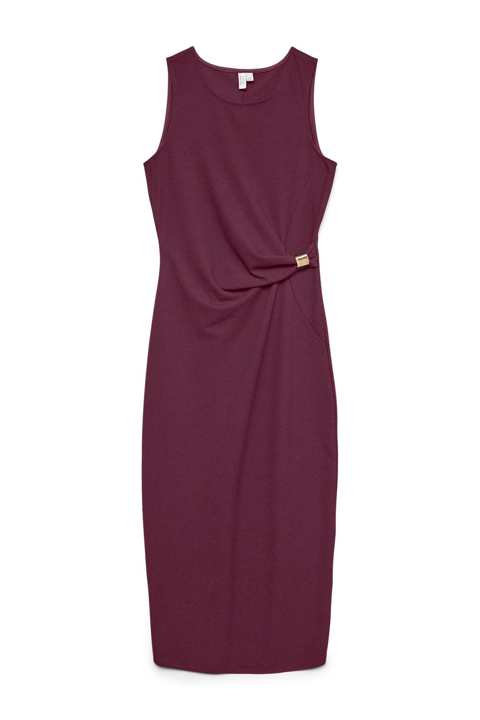 Okayyyy this is so classy... love!! Wearing this in an XL, but I probably could’ve gone for a Large for a more fitted look. The twist at the hip with the buckle is super cute and really pulls the look together. Loving the length, and the fabric has a nice stretch. Such a pretty burgundy colour too, obsessed!