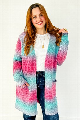 The Sweet Dream Cardigan has lightweight space-dye knit with beautiful ombre colors that are great for fall. Front pockets keep your essentials close while you're out and about. Throw it over basics when you need an extra cozy layer.