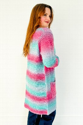 This cardigan is an absolute dream! Soft, super stretchy, and seriously cute! I sized up to an XL for that perfectly relaxed, cozy fit I love, but I could’ve easily gone with a Large for something a bit more snug and still felt great. The colours are so fun and playful, they totally remind me of popsicles. If you're looking for comfort and cuteness, this is the cardigan you need.