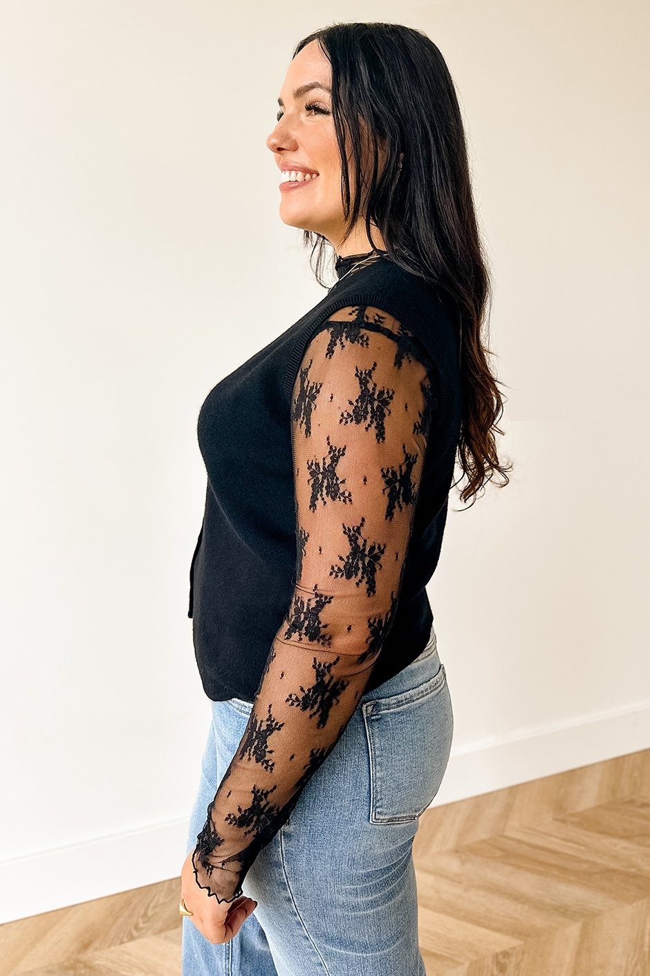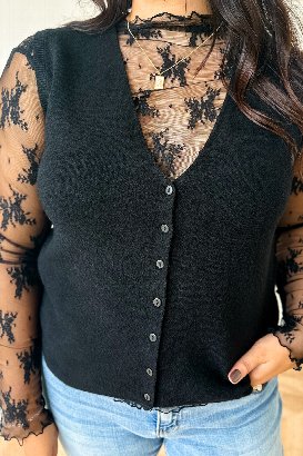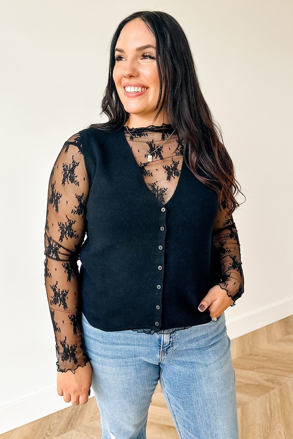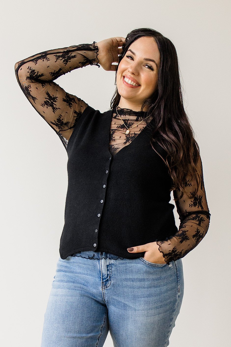 Okayyy, this vest is giving everything it needs to give, I’m wearing a size Large and it's fitting perfectly! It's crazy soft, which I love. All the buttons can be done up or popped open if that’s more your style. I wore it with the Serena Lace Top underneath, and I’m obsessed with how the look turned out, it’s giving chic. I think it would be just as cute over a regular long sleeve or even worn on its own (we love a versatile piece 😜). Go with your true size on this one, ladies, trust me, once you put it on, you’re gonna fall in love!