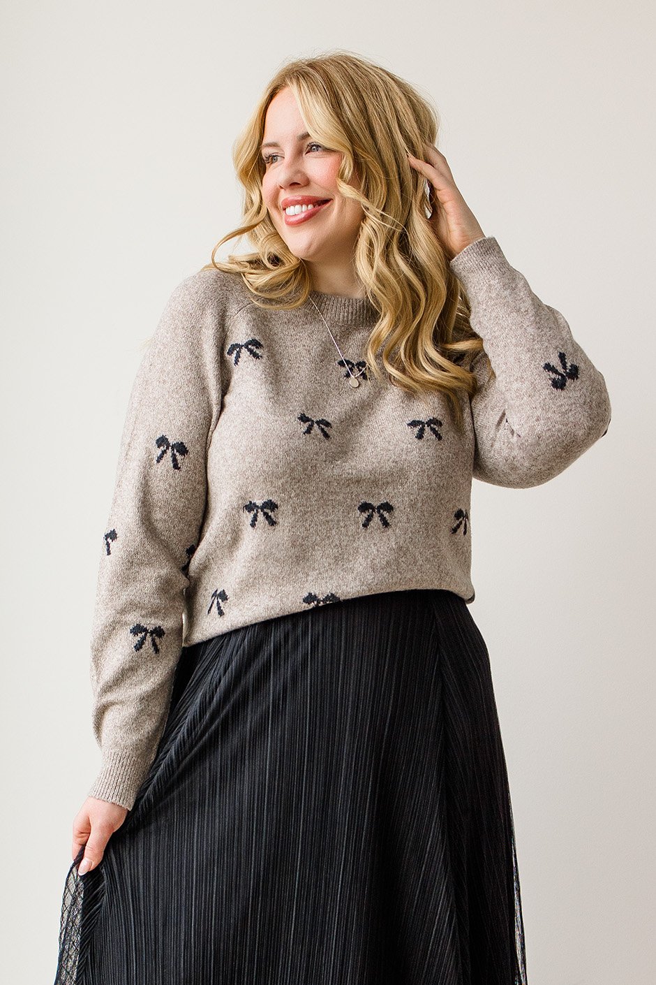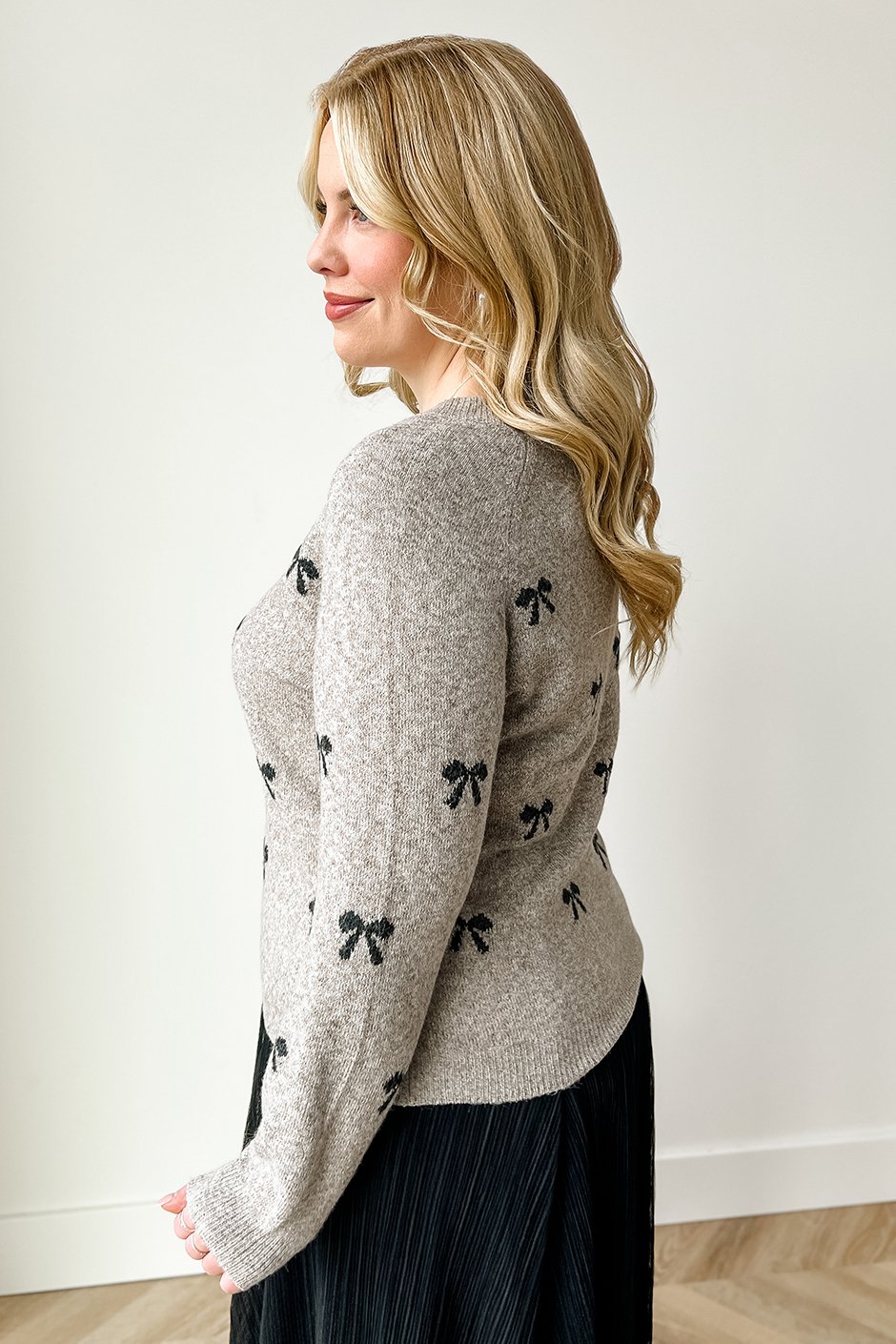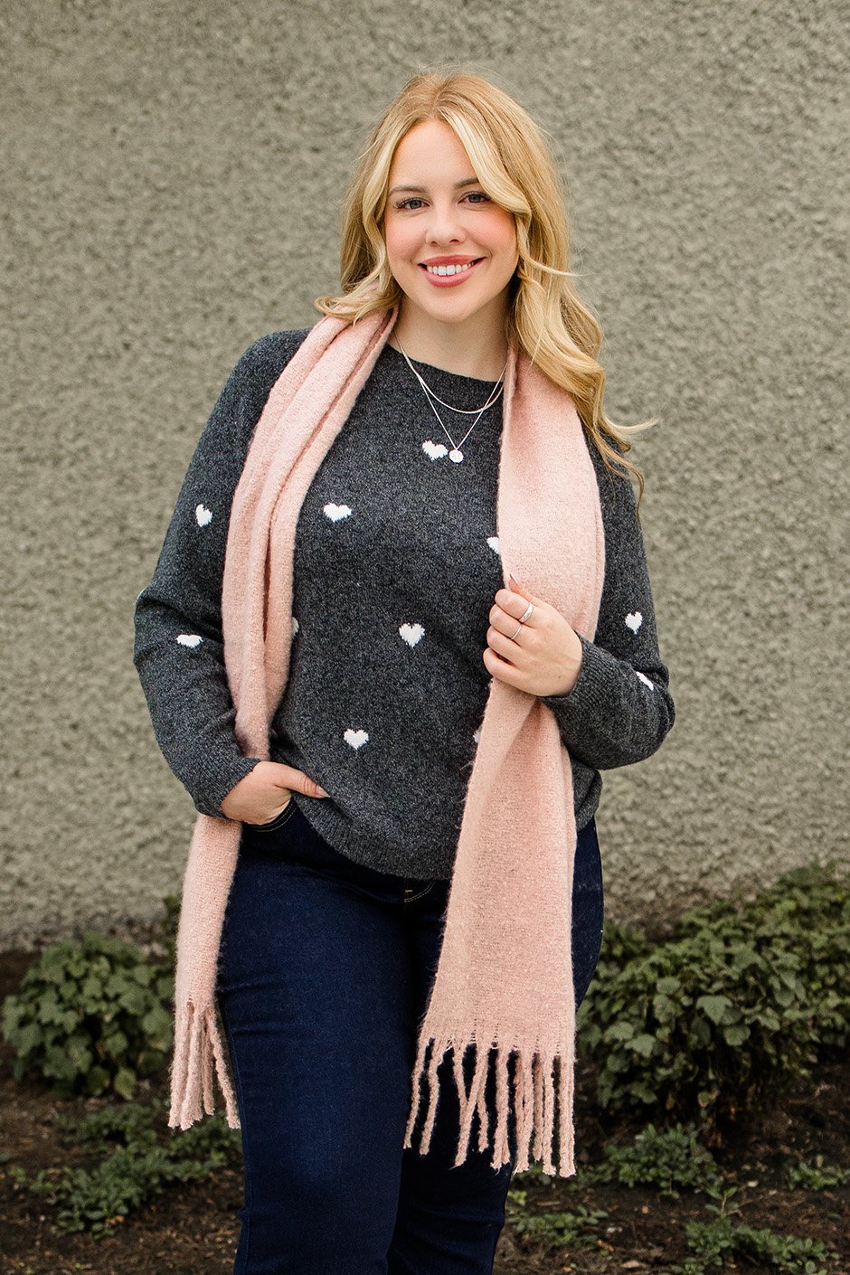 An incredibly soft sweater with sweet little hearts is what everyone needs in their wardrobe! I always prioritize comfort and style; this sweater makes that easy. I found the body length perfect as well as the arm length. It came down to my hips, which is exactly where I want a sweater to sit. I'm in my true size XL and love the cozy fit. Because of how stretchy this is, I could also fit the large but will stick with the cozy fit of the XL.