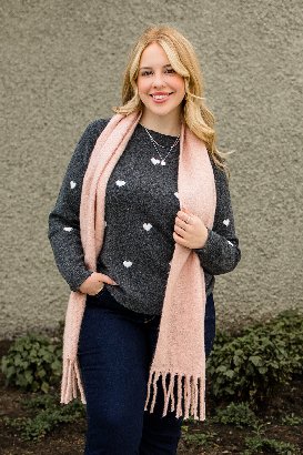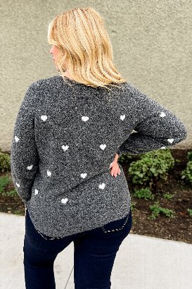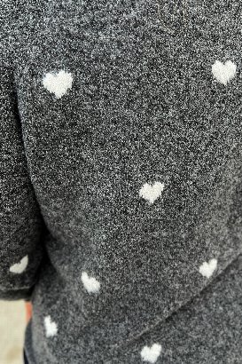 This sweater has adorable heart patterns all over with soft, stretchy fabric that feels amazing. Wear it with jeans or pair with a skirt and tights for something dressier. Your new favorite for days when you want to feel cozy and cute.