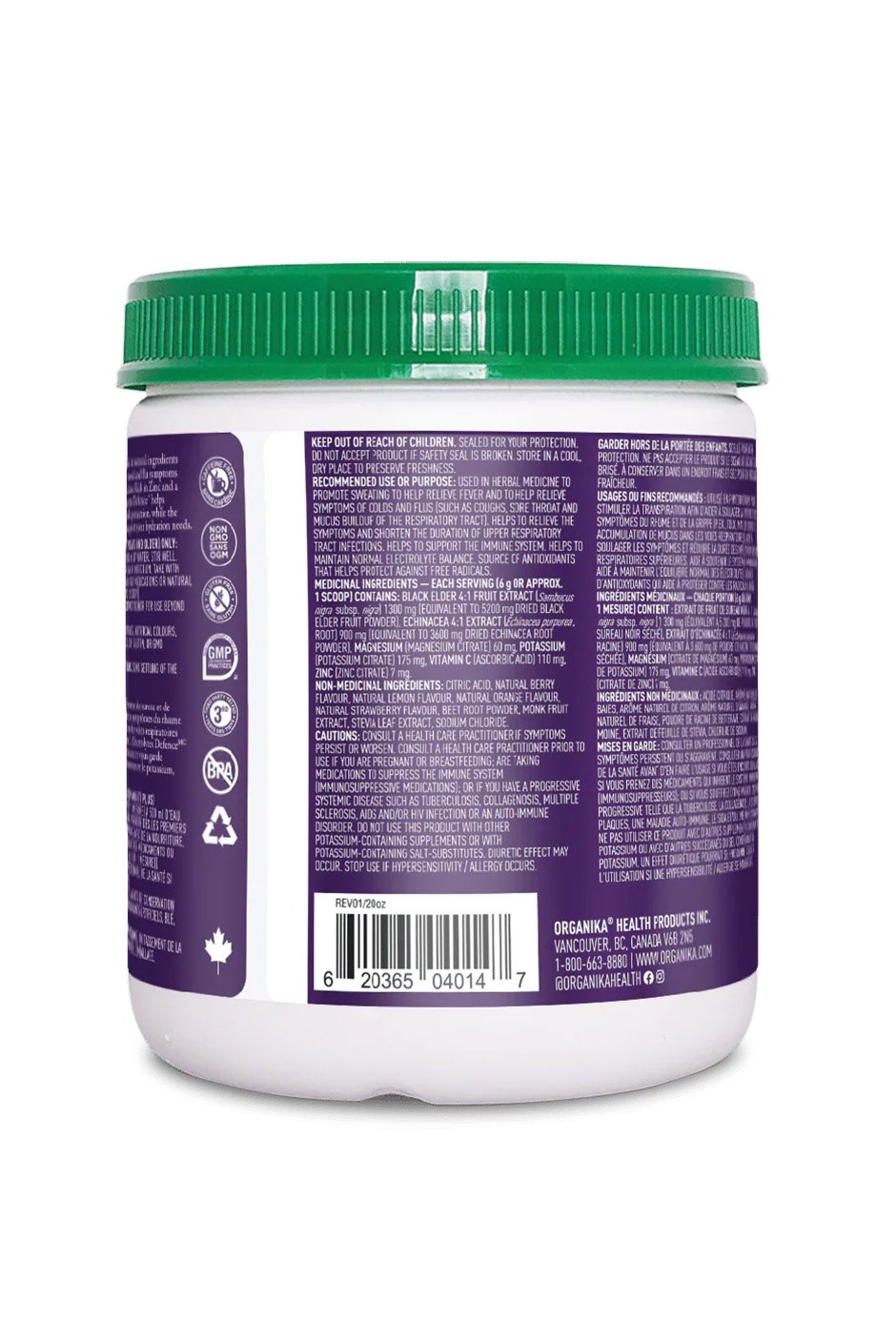 MEDICINAL INGREDIENTS - EACH SERVING (6 g OR APPROX.) 1 SCOOP CONTAINS: BLACK ELDER 4:1 FRUIT EXTRACT (Sambucus nigra subsp. nigra) 1300 mg (equivalent to 5200 mg dried black elder fruit powder), ECHINACEA 4:1 EXTRACT (Echinacea purpurea, root)?900 mg (equivalent to 3600 mg dried echinacea root powder), MAGNESIUM (magnesium citrate) 60 mg, POTASSIUM (potassium citrate) 175 mg, VITAMIN C (ascorbic acid) 110 mg, ZINC (zinc citrate) 7 mg.