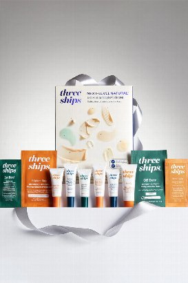 Navigate natural with confidence. Try the best of Three Ships with this dermatologist-tested, all-natural collection of best-selling deluxe minis and samples.