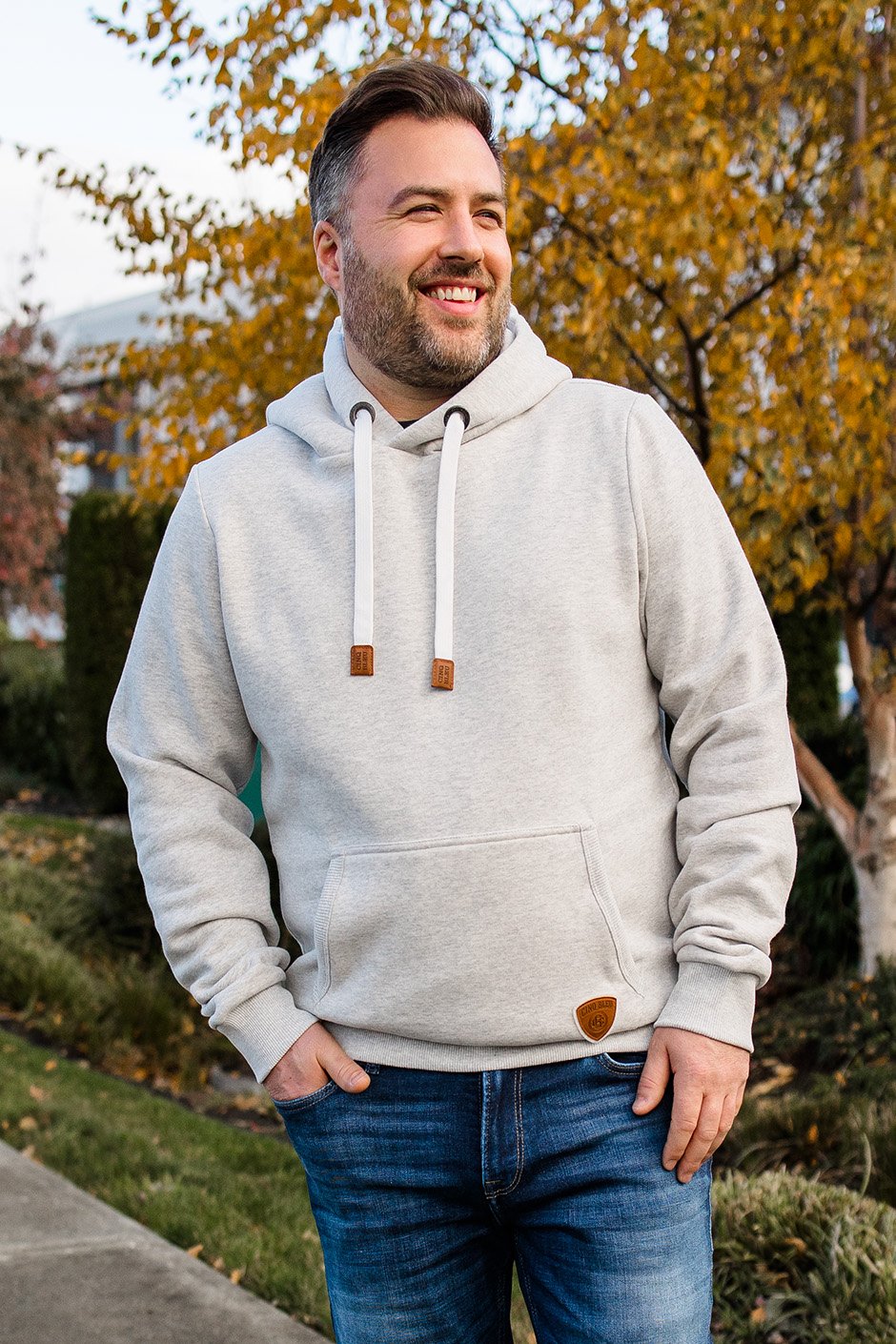 The quality of all the Cinq Bleu hoodies is great! This style is one of my personal favourites. I do like the kangaroo pocket and the thickness of the fabric. It's a good enough weight to keep you warm without overheating. This is an easy piece to throw on and go to still look put together while casual. I'm in the size Large and find it fits true to size.