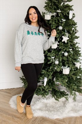 This is seriously the cutest Christmas sweatshirt!! I love that it's neutral enough to wear for day to day, leading up to the holidays. While still having the super cute Christmas tree graphic and the text on the back. SO cute! I'm not a fan of thicker, bulkier holiday sweaters, so this sweatshirt is a lighter option and is the perfect thickness for me. It's a nice, relaxed fit without looking too oversized. I'm wearing my true size large and everything fits perfectly!!