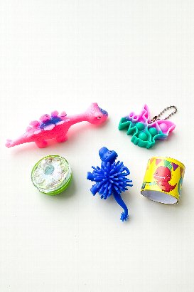 • Included are Dino-themed toys, stress balls, accessories, etc